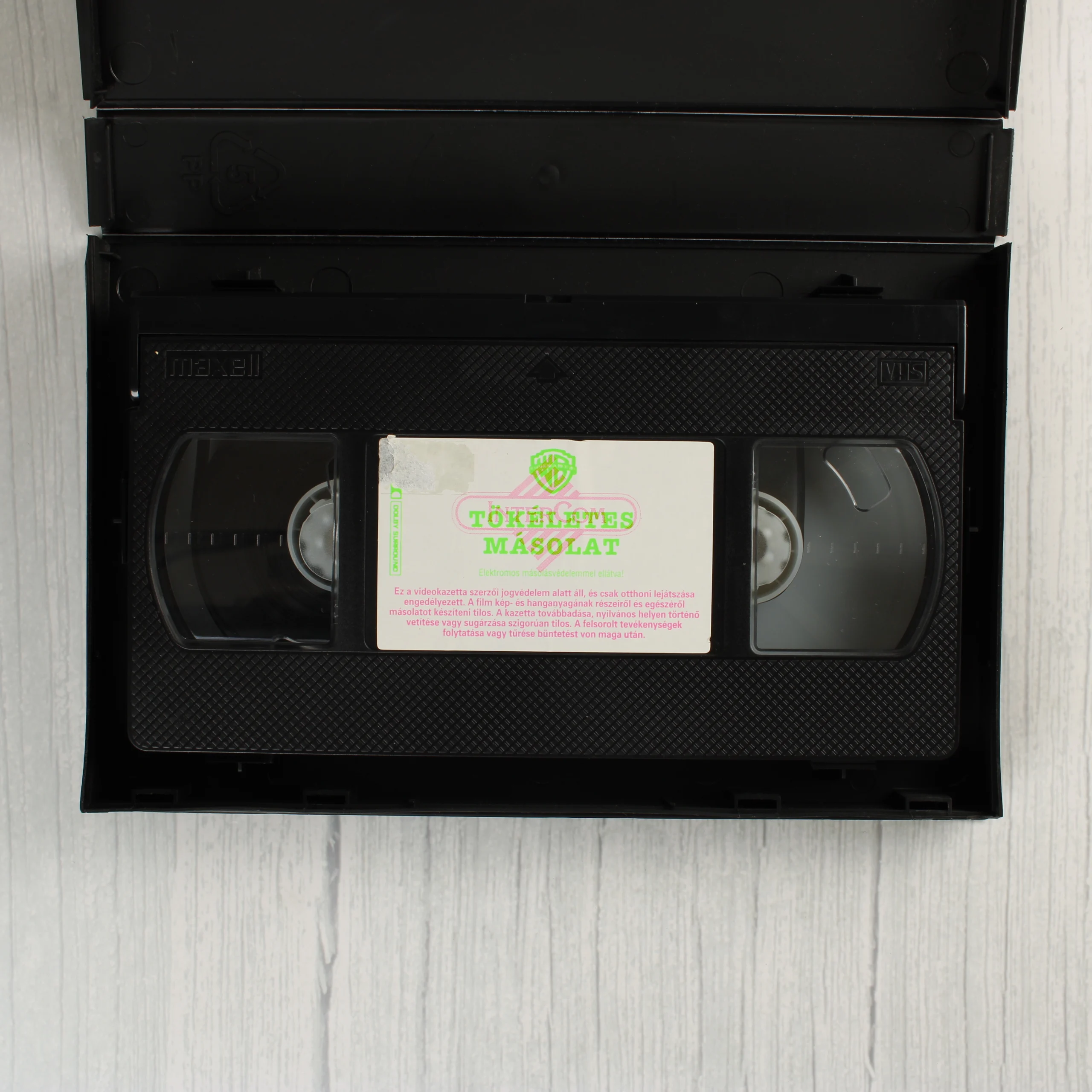 A Tökéletes másolat (Copycat) című amerikai thriller VHS kazettája eredeti magyarországi kiadásban. A fekete műanyag tok elején a film borítója látható Sigourney Weaver és Holly Hunter nevével, valamint egy hologramos MVKE matricával. A hátoldalon a film rövid leírása, stáblistája és jelenetfotók szerepelnek. A készlet tartalmazza a Maxell márkájú fekete VHS kazettát is, amelyen fehér alapon zöld és rózsaszín feliratos InterCom címke található. A kiadvány szinkronizált, játékideje körülbelül 91 perc.