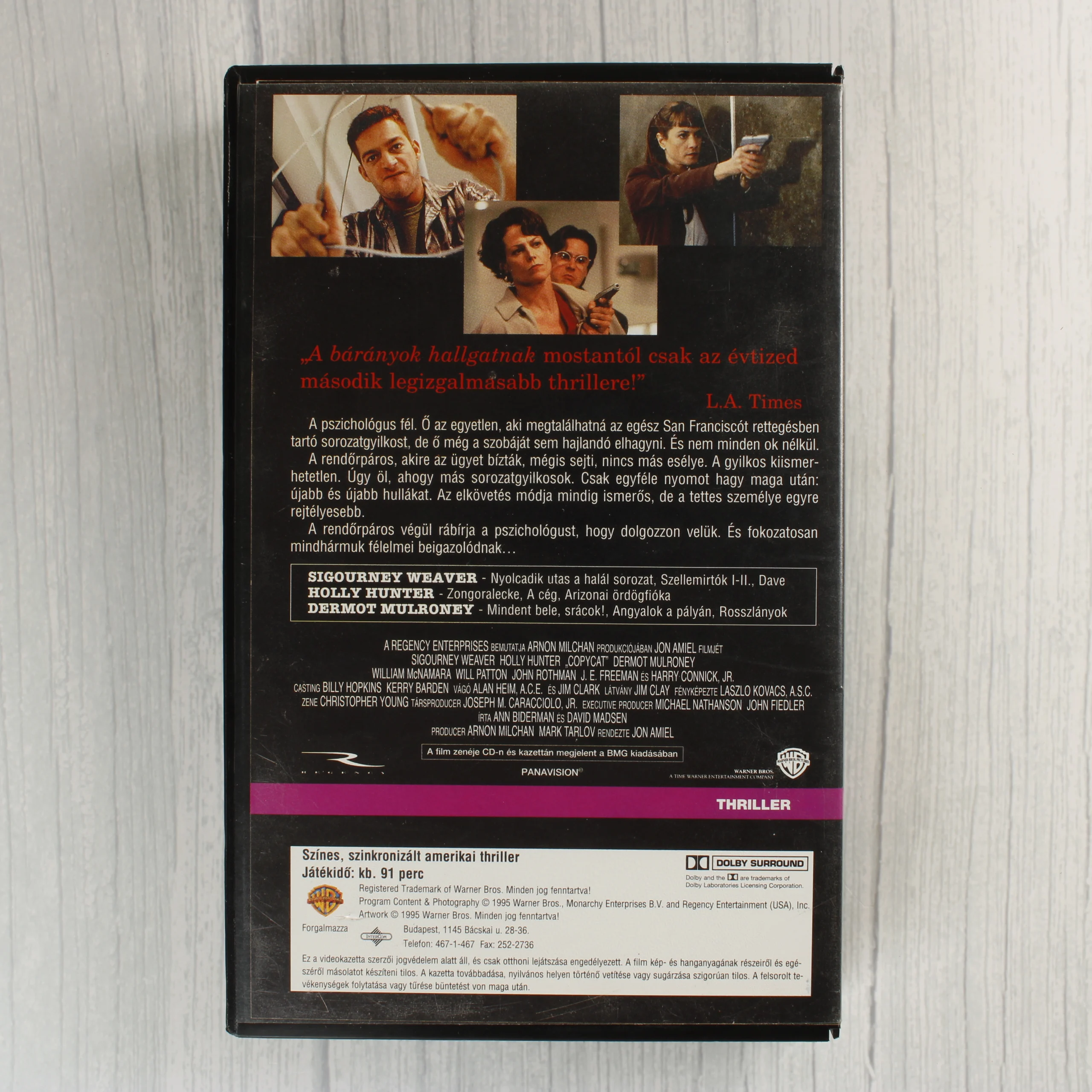 Tökéletes másolat (Copycat) thriller VHS kazetta magyar kiadásban, Sigourney Weaver és Holly Hunter főszereplésével, eredeti műanyag tokban.