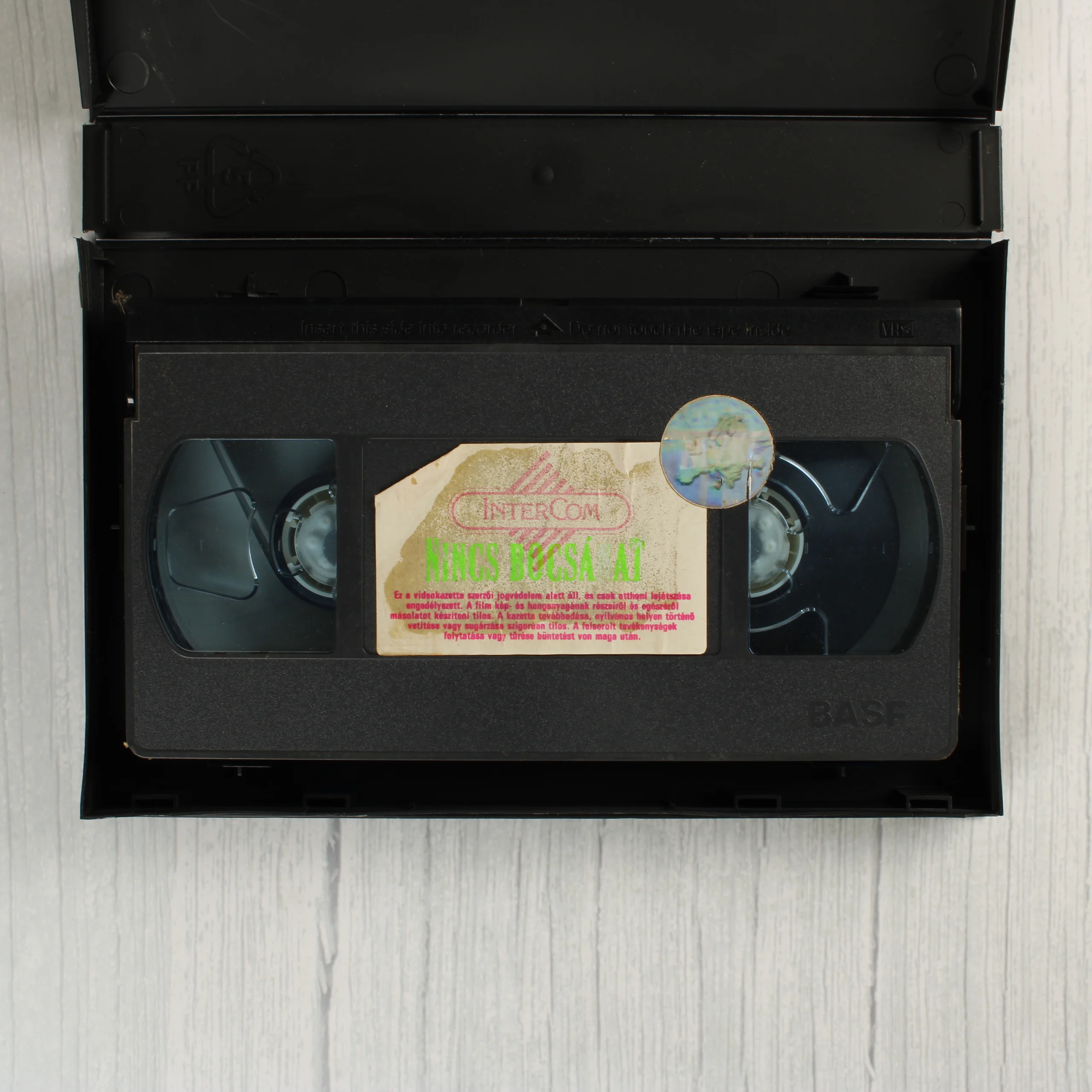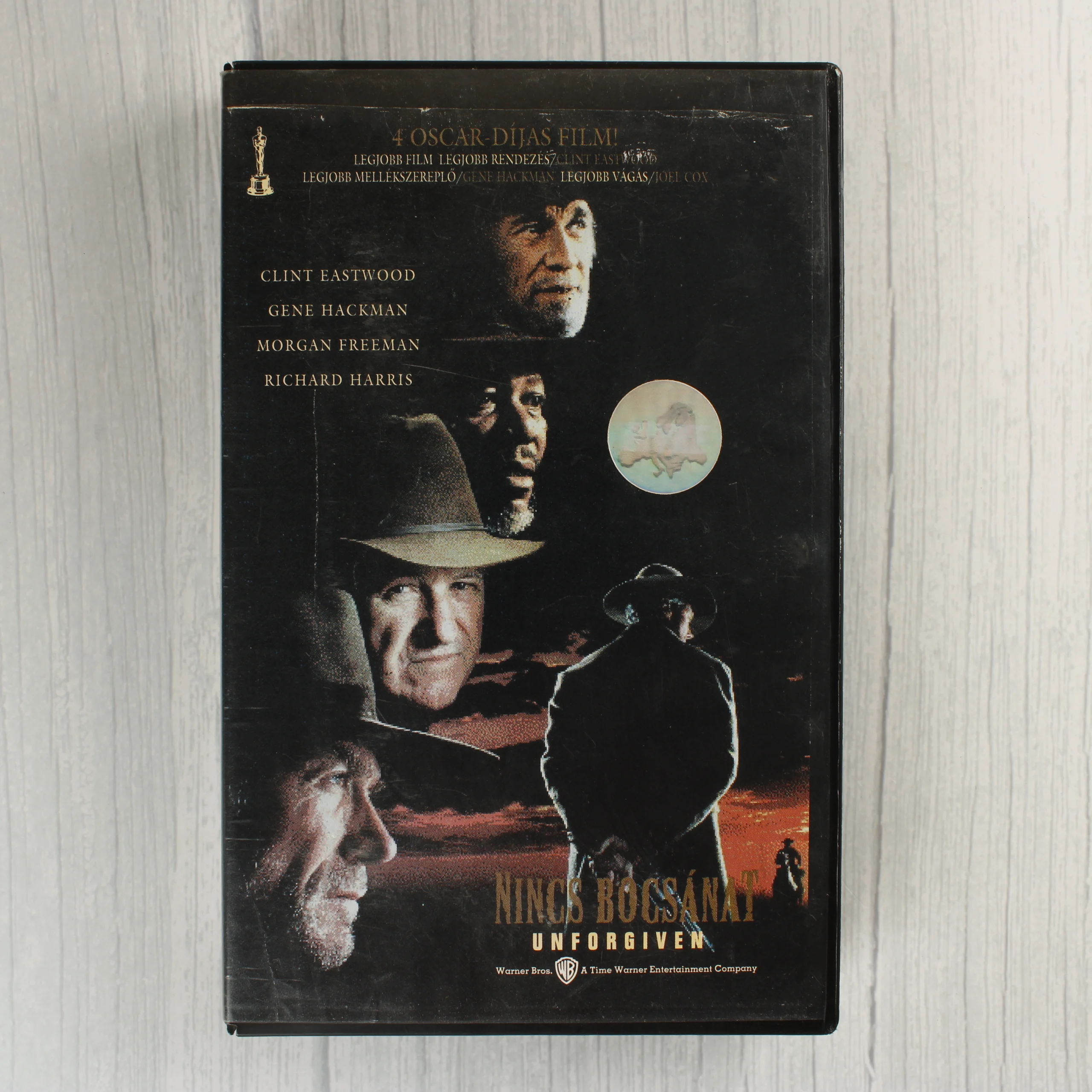A Nincs bocsánat (Unforgiven) című, 1992-es amerikai westernfilm magyarországi VHS kiadása. A fekete műanyag tokos csomagolás elején a főszereplők, Clint Eastwood, Gene Hackman, Morgan Freeman és Richard Harris láthatóak. A hátoldalon a film rövid leírása, jelenetfotók és a stáblista olvasható. A kiadvány az InterCom forgalmazásában jelent meg, a kazetta maga egy BASF gyártmányú szalag, amelyen egy sérült, kopottas papírcímke található a film címével és a forgalmazó logójával. A tok és a borító felületén használatból eredő apróbb karcok és kopások láthatóak.