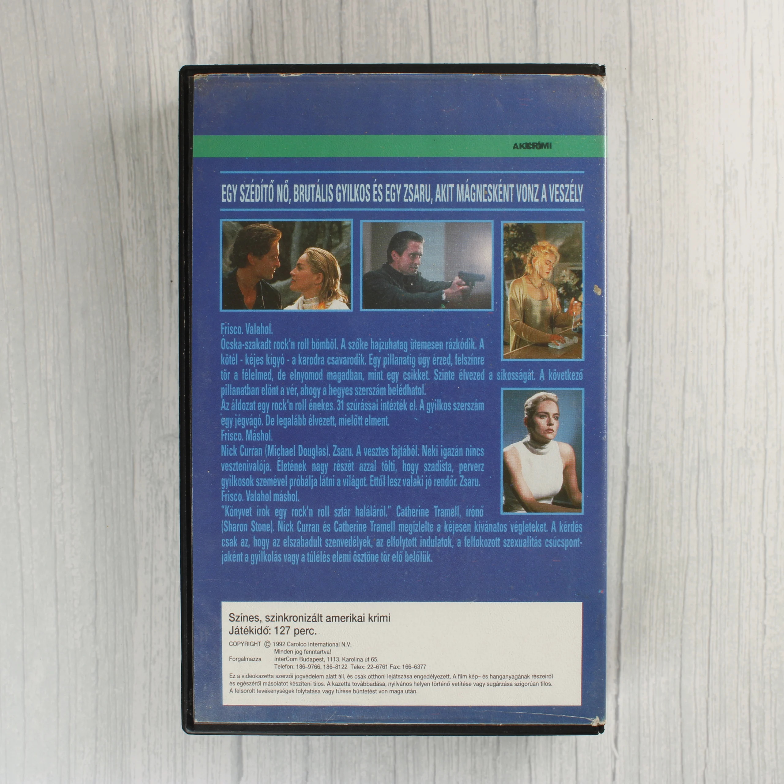 Elemi ösztön (Basic Instinct) VHS videókazetta Michael Douglas és Sharon Stone főszereplésével, magyar szinkronnal, InterCom kiadásban.