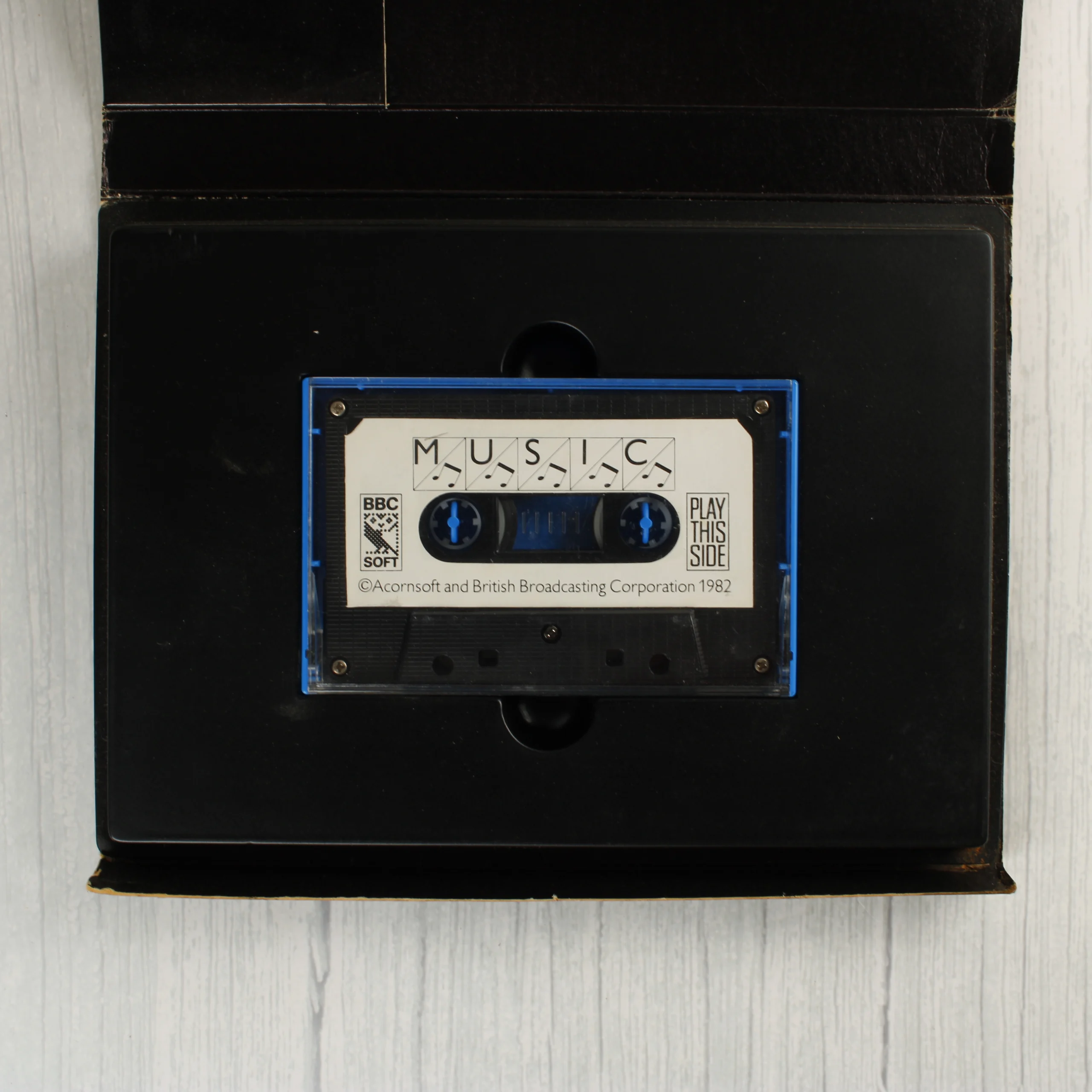 Acornsoft Music zeneszerkesztő szoftver BBC Microcomputer (A és B modell) számítógépekhez, eredeti 1982-es magnókazettás kiadásban.