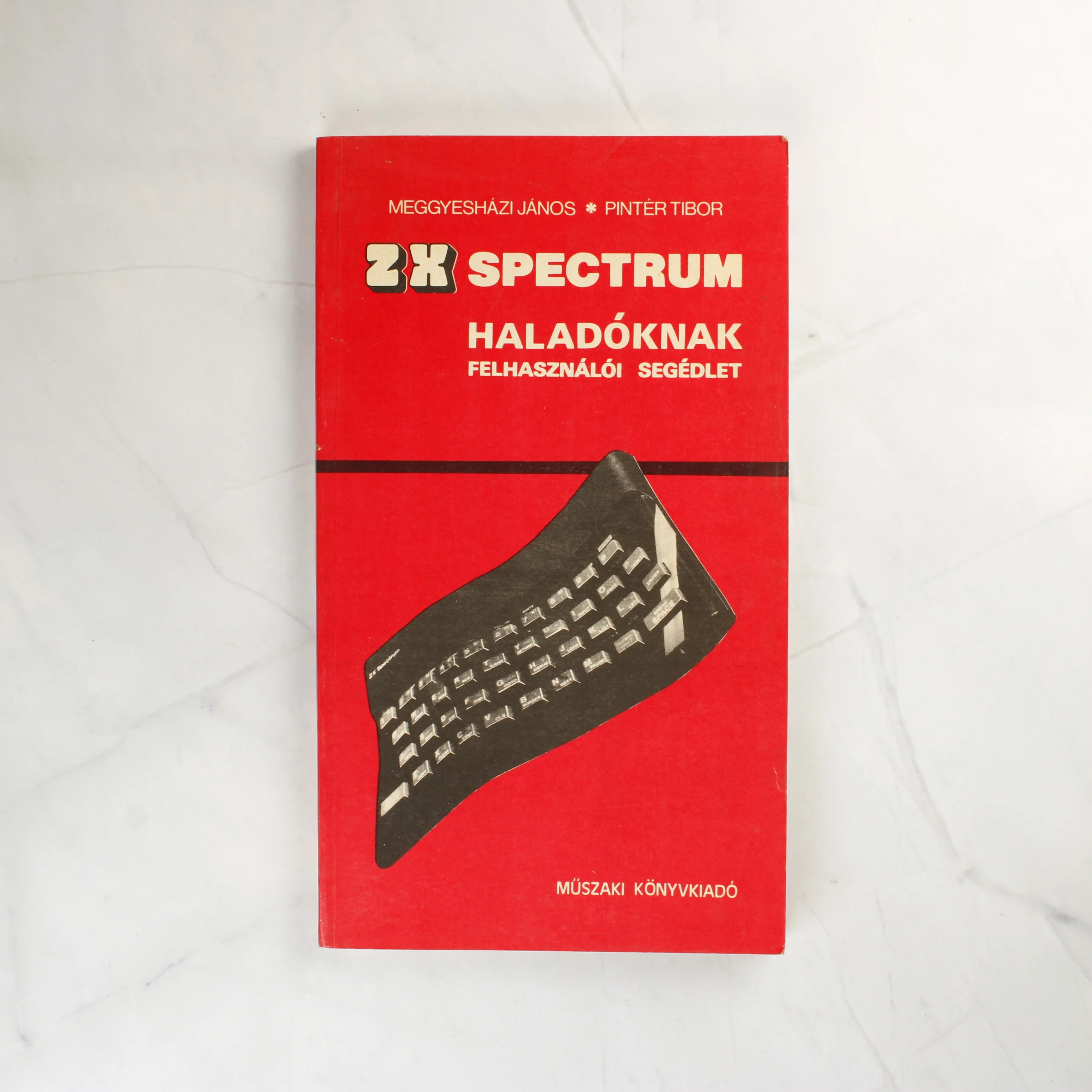 Meggyesházi János és Pintér Tibor ZX Spectrum haladóknak című felhasználói segédlete a Műszaki Könyvkiadótól. Retro számítástechnikai szakkönyv piros borítóval.