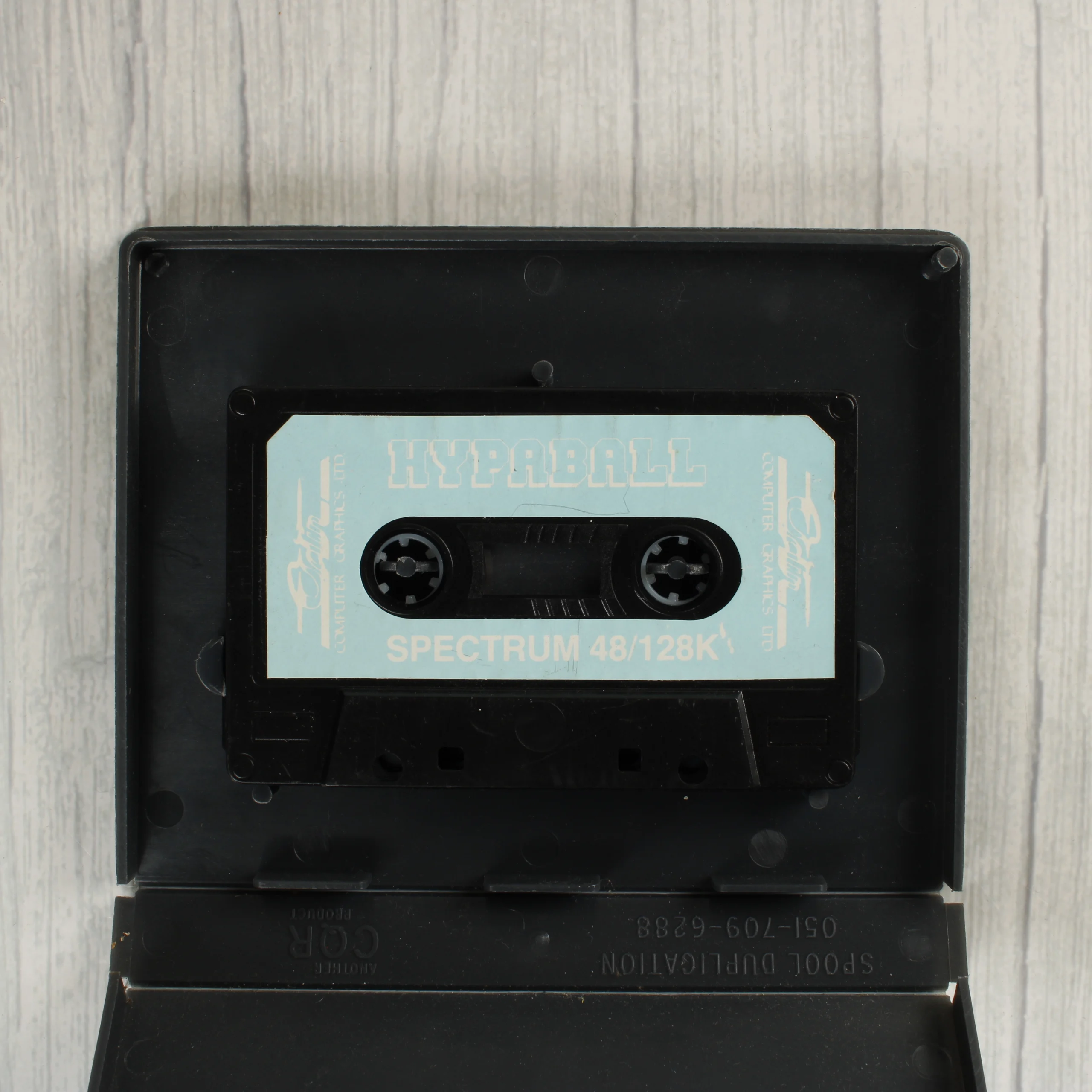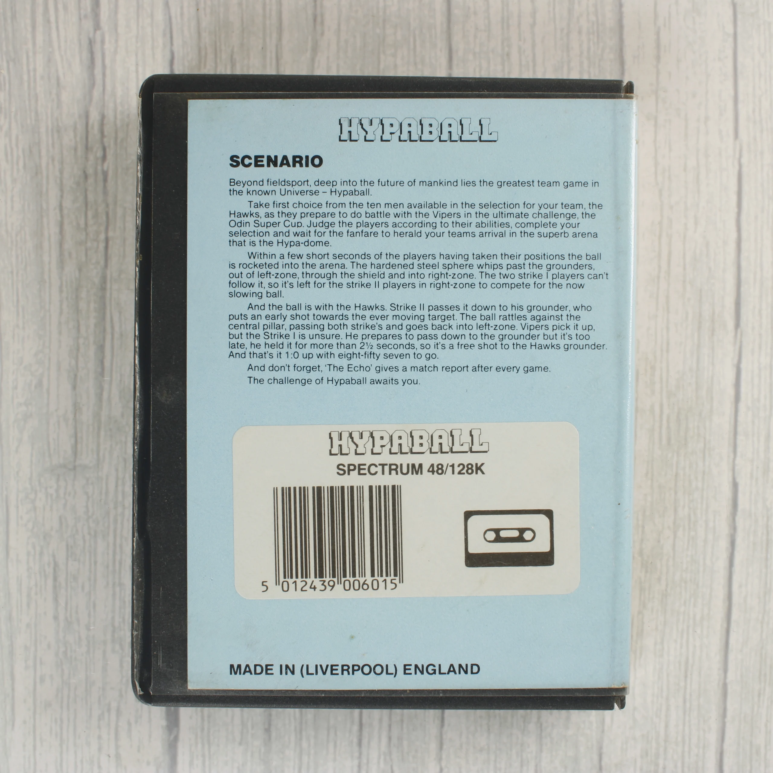 A Hypaball című videójáték ZX Spectrum 48/128K platformra készült kiadása. A csomag egy fekete műanyag tokot tartalmaz, amelyben egy eredeti magnókazetta található. A tok előlapján futurisztikus sportolót ábrázoló grafika látható, az Odin Computer Graphics Ltd. logójával. A hátoldalon a játék történetének leírása olvasható angol nyelven, valamint itt található a vonalkód és a gyártási hely megjelölése. A kazetta fekete műanyagból készült, világoskék címkével, amelyen a játék címe és a platform megnevezése szerepel. A termék Angliában készült.