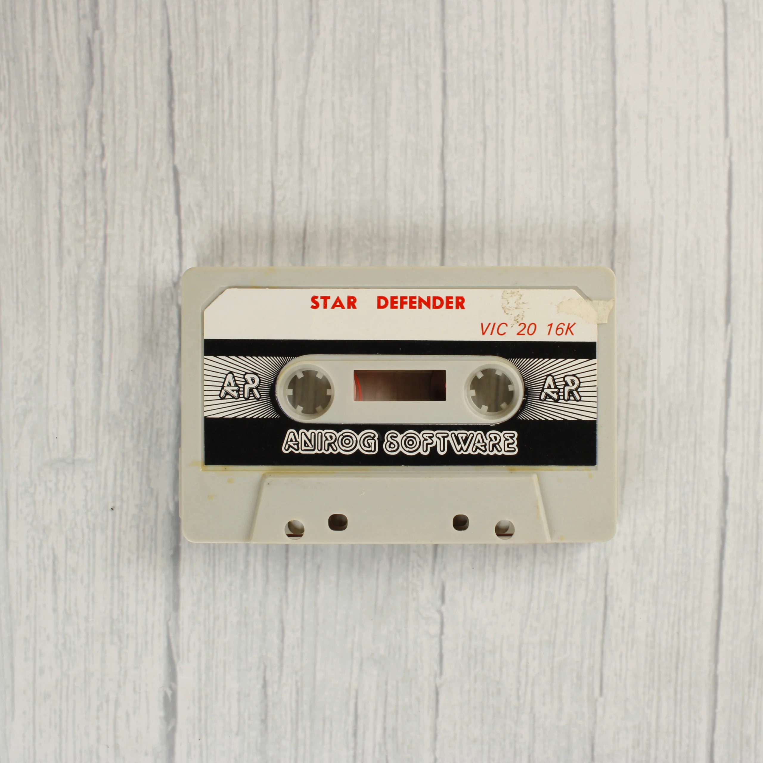 Star Defender videójáték Commodore VIC-20 számítógéphez, Anirog Software kiadás, 1984. Eredeti kazettás formátum, 16K bővítést igényel.