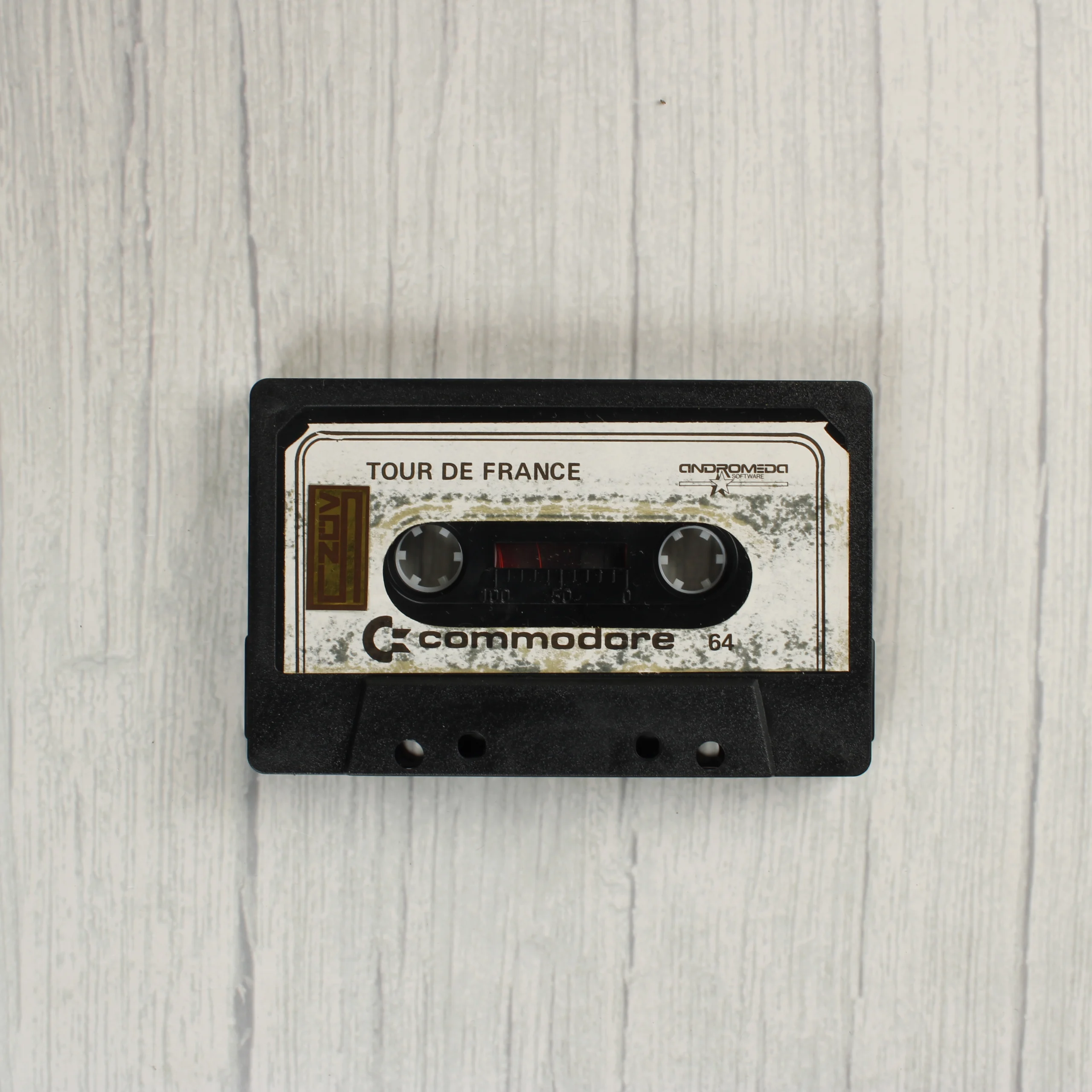 A Tour de France című videójáték Commodore 64 platformra készült kiadása. A csomag egy fehér műanyag tokot és egy fekete színű mágnesszalagos kazettát tartalmaz. A tok előlapján színes illusztráció látható, amely kerékpárosokat ábrázol a francia nemzeti színek előtt, valamint egy kézzel írt számokat tartalmazó fehér matrica található rajta. A hátoldalon magyar nyelvű leírás olvasható a játékról, a betöltési utasításokról és a szerzők listájáról, alul a Novotrade logójával. A kazetta címkéje fehér, rajta a játék címe, a Commodore 64 felirat és az Andromeda Software logója látható. A címkén az idő múlása miatti elszíneződés és foltosodás figyelhető meg.