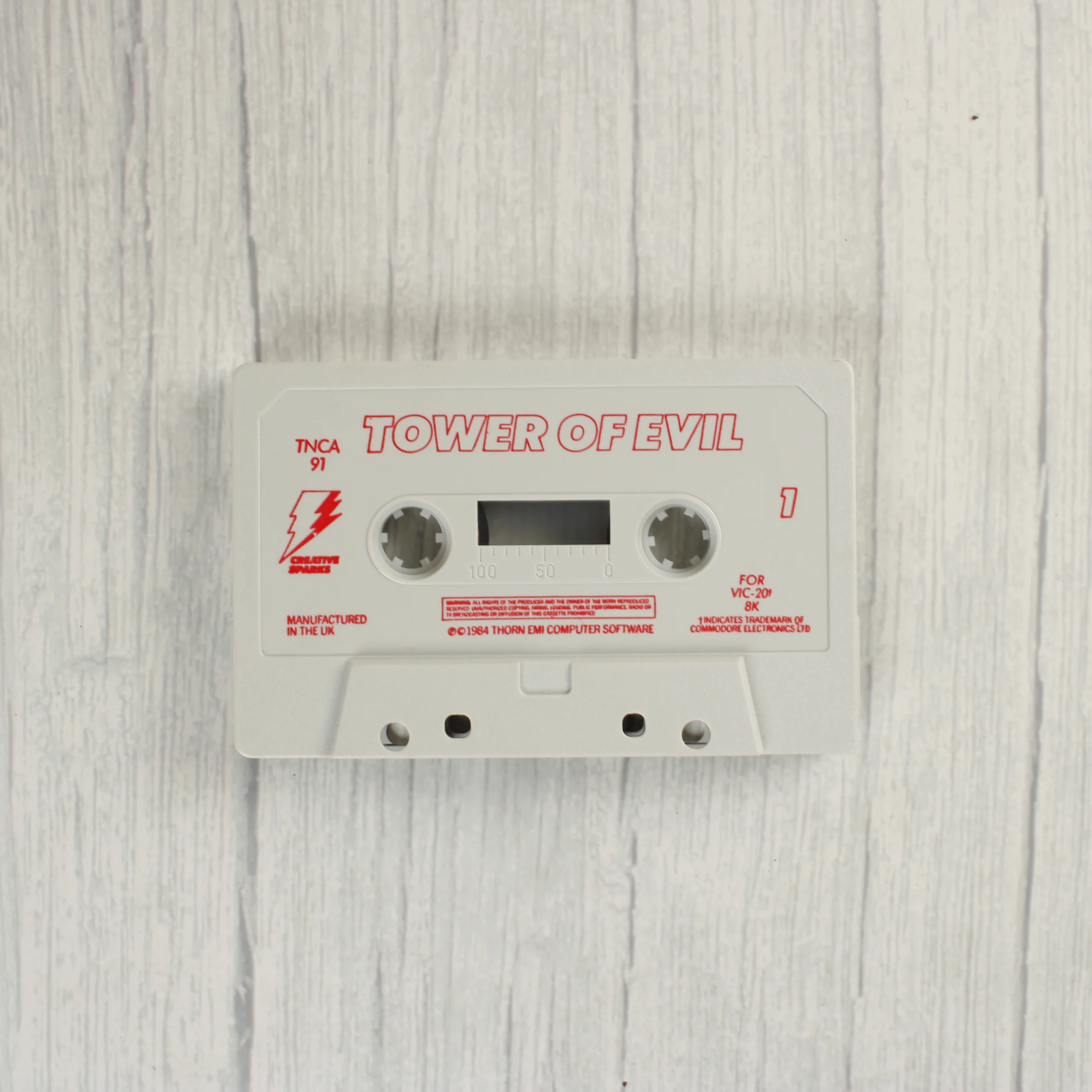 A Tower of Evil egy 1984-es kiadású videójáték Commodore VIC-20 számítógéphez, amely 8K memóriabővítést igényel. A csomag tartalmazza az eredeti műanyag tokot a színes borítóval, valamint a fehér színű adathordozó kazettát. A borítón egy sárkánnyal küzdő hős látható egy várkastély környezetében. A kazetta fehér műanyagból készült, piros feliratozással, amelyen a játék címe, a kiadó logója és a gyártási adatok szerepelnek. A termék a Creative Sparks és a Thorn EMI Computer Software gondozásában jelent meg az Egyesült Királyságban.