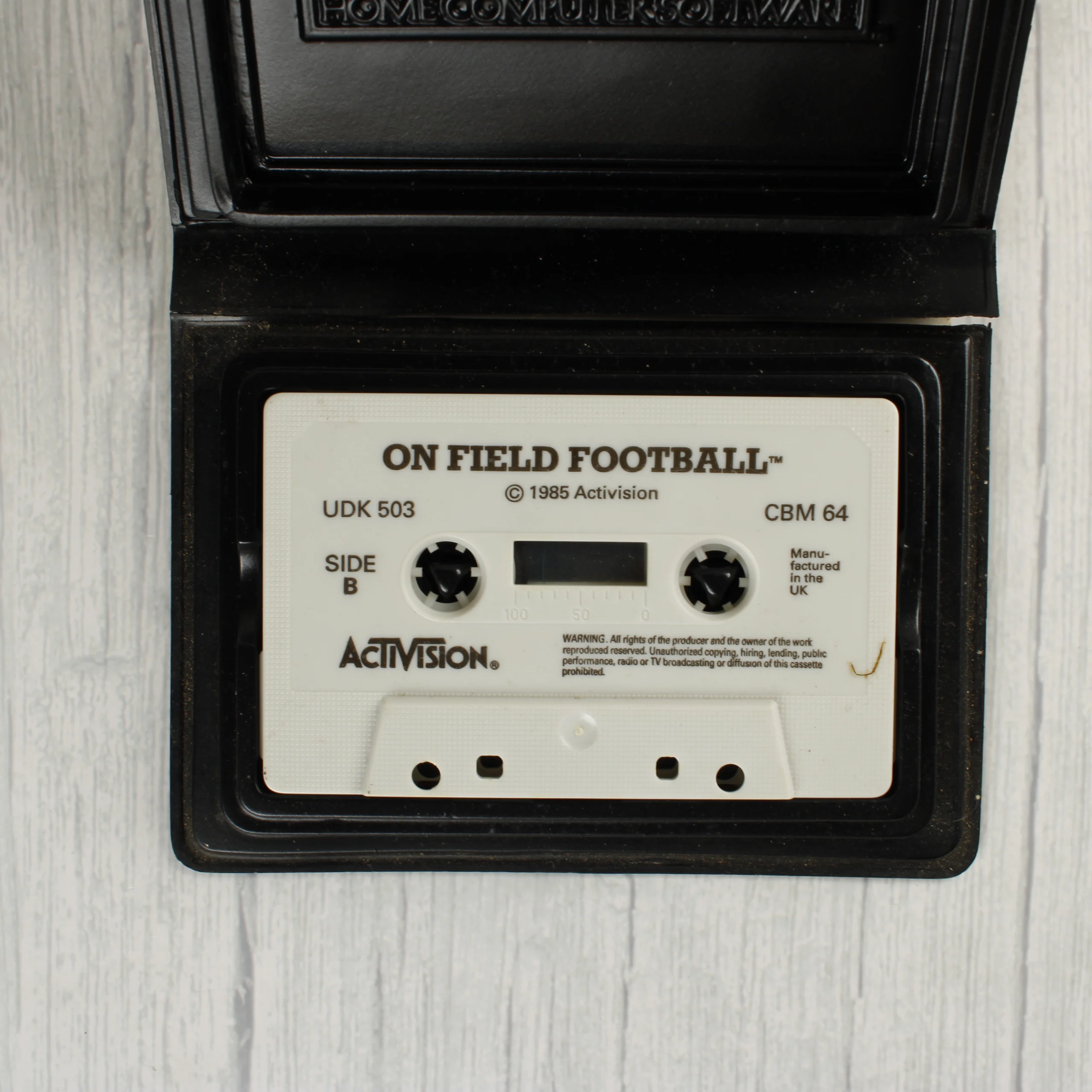 Az On-Field Football egy amerikai futball szimulátor videójáték Commodore 64 platformra. A csomag egy fekete műanyag tokot tartalmaz, amelyben egy fehér színű, feliratozott magnókazetta található. A borítón egy sisakot viselő amerikai futballjátékos látható akció közben, kezében a labdával. A hátoldalon angol nyelvű leírás olvasható a játékmenetről, valamint két képernyőkép mutatja be a grafikát. A kiadvány az Activision Home Computer Software gondozásában jelent meg, a Gamestar fejlesztésében. A kazetta címkéjén jól látható a gyártó logója, a játék címe és a CBM 64-es kompatibilitás jelzése.