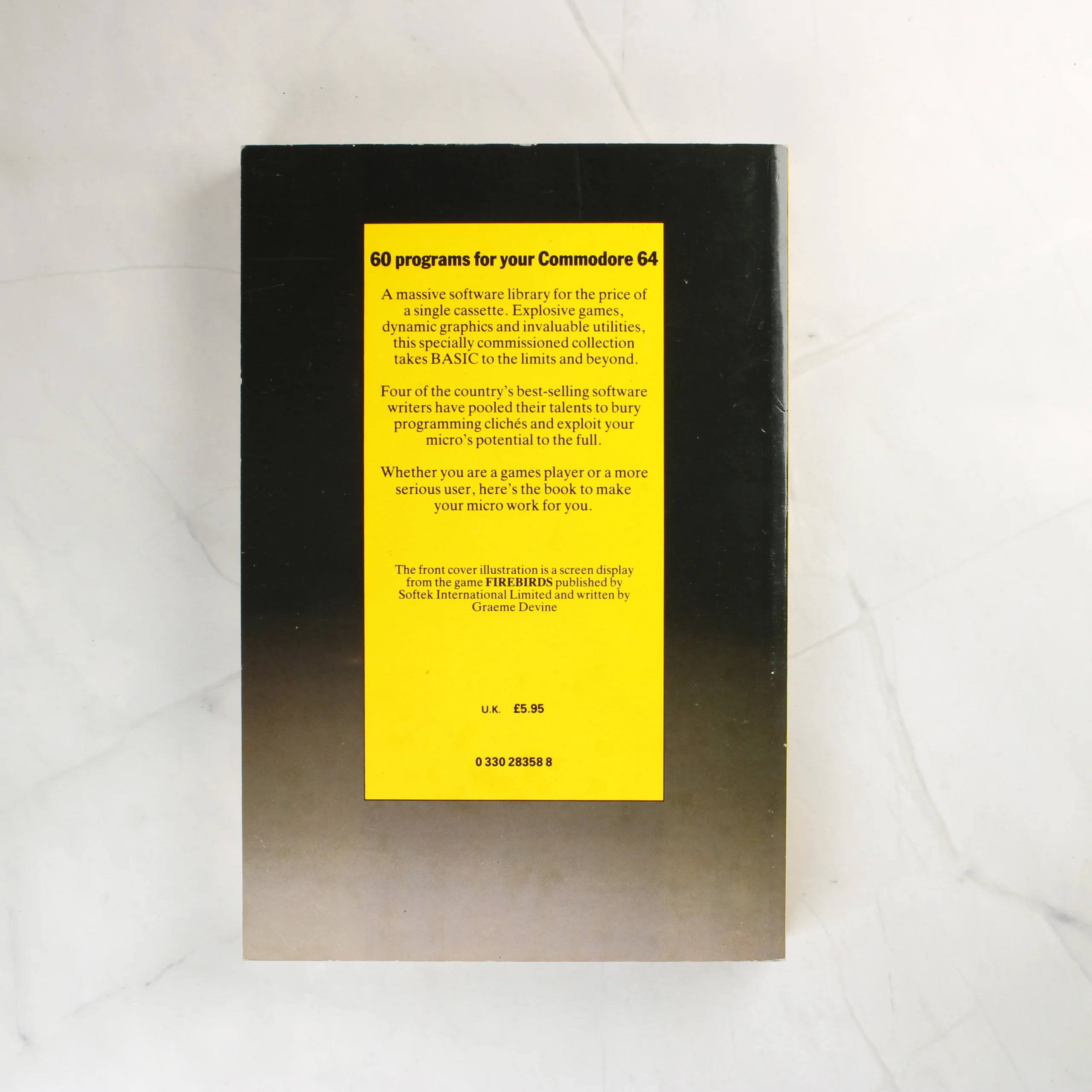 A Pan Books gondozásában megjelent Sixty Programs for the Commodore 64 című puhafedeles könyv. A borító fekete alapszínű, középen sárga és kék mezőben olvasható a cím, alatta pedig egy videójátékból származó képernyőmentés látható. A hátoldalon sárga keretben található a tartalom rövid leírása, az ár és az ISBN azonosító. A könyv gerince sárga színű. A kiadvány a Personal Computer News Library sorozat része, szerzői Robert Erskine, Humphrey Walwyn, Paul Stanley és Michael Bews.