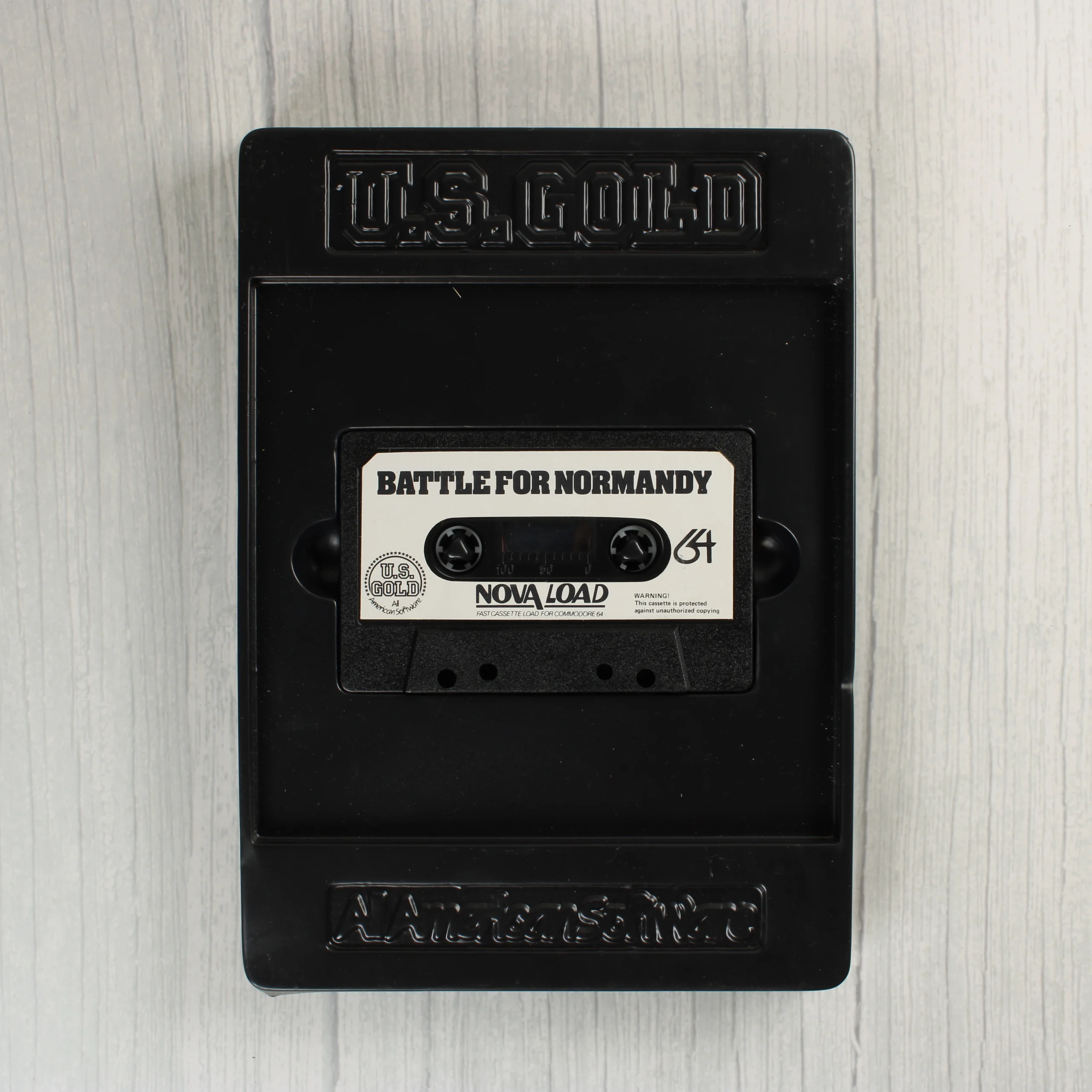 A Battle for Normandy című videójáték Commodore 64 platformra készült kiadása. A csomag tartalmazza az eredeti színes kartondobozt, egy fekete-fehér borítójú használati útmutatót, egy hatszögletű mezőkre osztott tereptérképet és a játékot tartalmazó mágnesszalagos kazettát. A kazetta egy fekete műanyag tálcában helyezkedik el, amelyen az U.S. Gold és az All American Software logói láthatók. A doboz elején egy illusztráció látható, amelyen katonák szállnak ki egy számítógép monitorából a tengerpartra. A hátoldalon a játékmenetről készült képernyőkép és egy stratégiai térkép található. A papíralapú mellékletek és a doboz élei mentén használatból eredő kopások és kisebb gyűrődések figyelhetők meg.