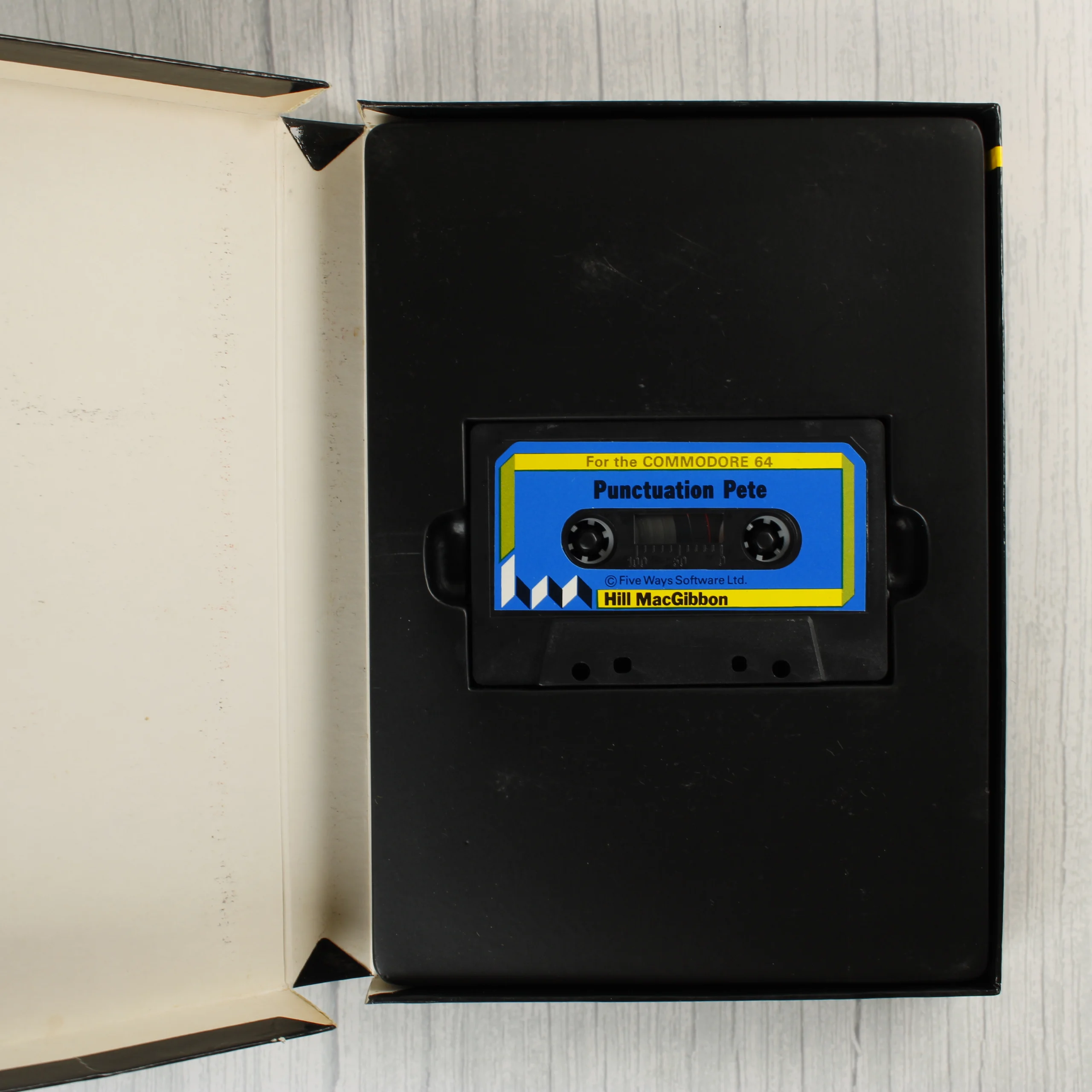 A Punctuation Pete egy oktató jellegű videójáték Commodore 64 platformra, amely eredeti dobozában, kísérő füzettel és adathordozó kazettával rendelkezik. A fekete kartondoboz elején színes grafika látható, amely egy piros figurát ábrázol sárga betűk és egy nagyító társaságában. A csomag tartalmaz egy fekete műanyag kazettát kék-sárga címkével, valamint egy illusztrált használati útmutatót. A doboz hátoldalán sárga szövegdobozban olvashatók a program főbb jellemzői angol nyelven. A csomagoláson régi árcédulák és bolti matricák maradványai láthatóak. A belső részben egy fekete műanyag tálca tartja biztonságosan a kazettát. A kiadvány a Hill MacGibbon gondozásában jelent meg, a szoftvert a Five Ways Software Ltd. fejlesztette.