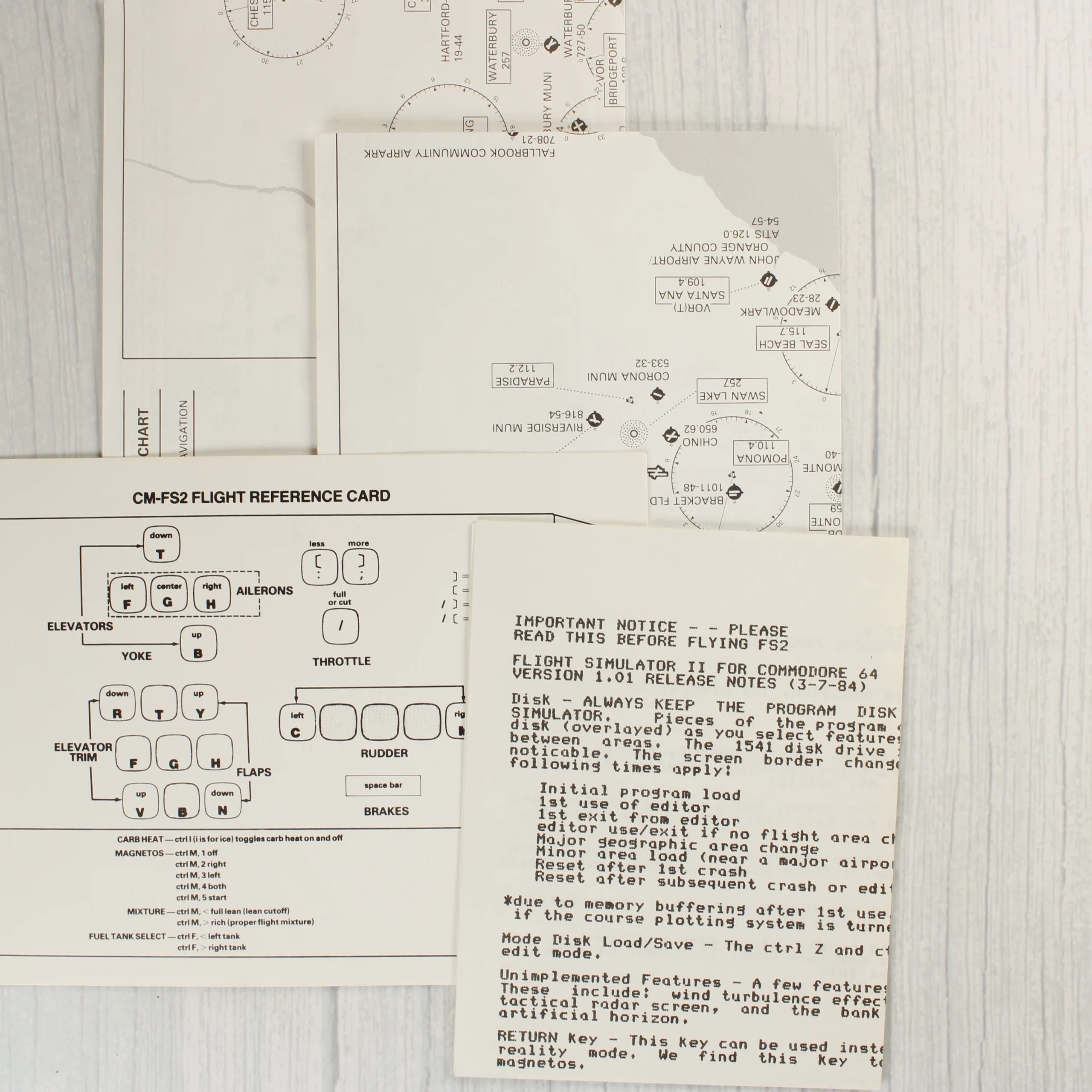 Flight Simulator II, Commodore 64, C64, subLOGIC, retro játék, szimulátor, floppy lemez, Bruce Artwick