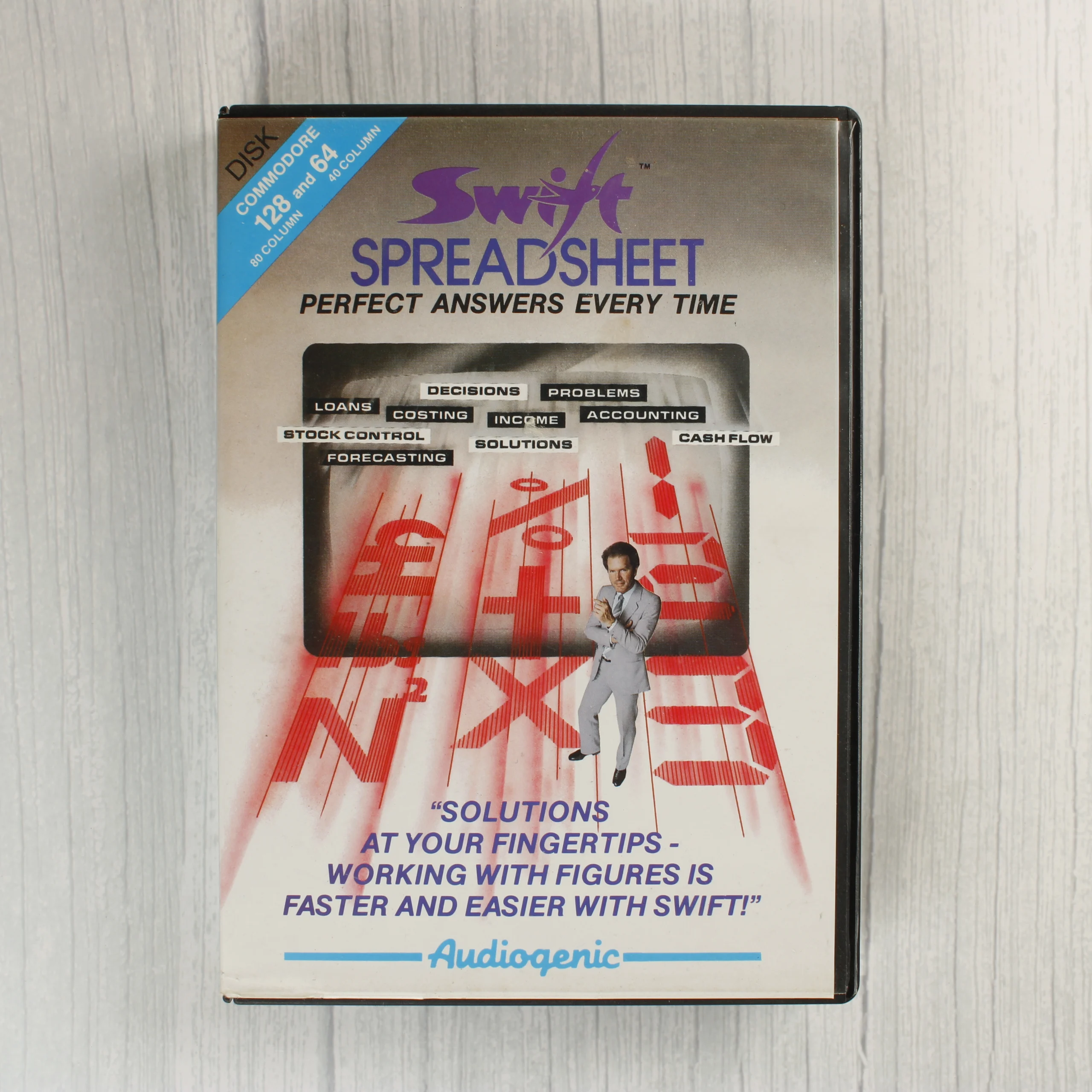 Commodore 64, Commodore 128, szoftver, táblázatkezelő, Audiogenic, retro, floppy lemez, 1985