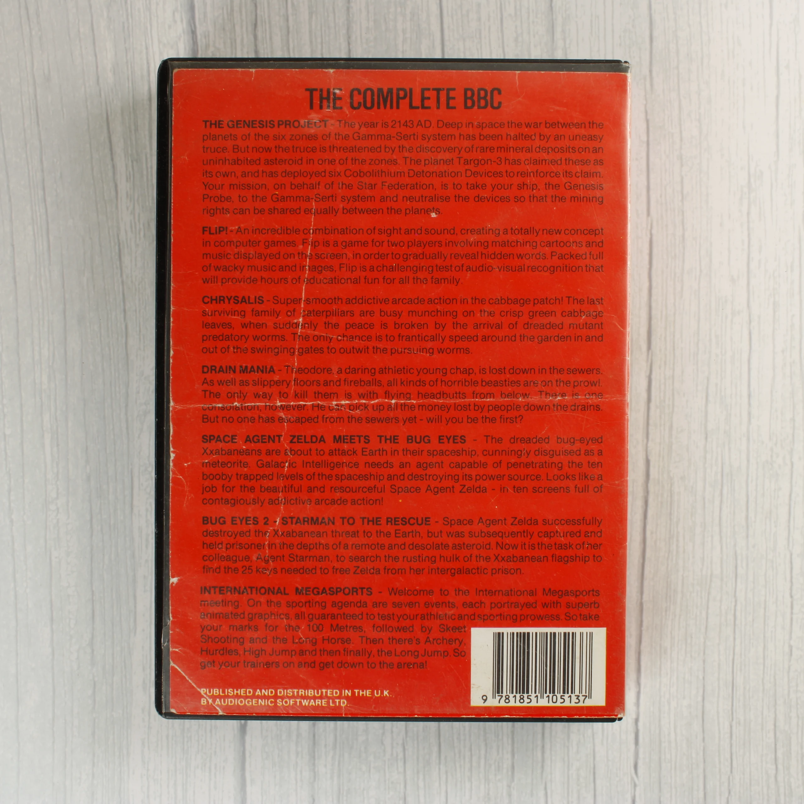 A The Complete BBC egy hét videójátékot tartalmazó gyűjtemény BBC Micro számítógéphez, amelyet az Audiogenic Software Ltd. adott ki 1986-ban. A csomag két darab fekete színű magnókazettát tartalmaz, amelyek egy nagyméretű, fekete műanyag tokban kaptak helyet. A borító piros, fekete és kék színeket használ, rajta a játékokból származó képernyőfotókkal és a címekkel, mint például a The Genesis Project, Chrysalis vagy a Bug Eyes II. A hátoldalon részletes leírás olvasható az egyes játékokról angol nyelven, valamint egy vonalkód is látható. A kazetták fehér címkével rendelkeznek, amelyeken a kiadó neve és a rajtuk lévő játékok címei szerepelnek.