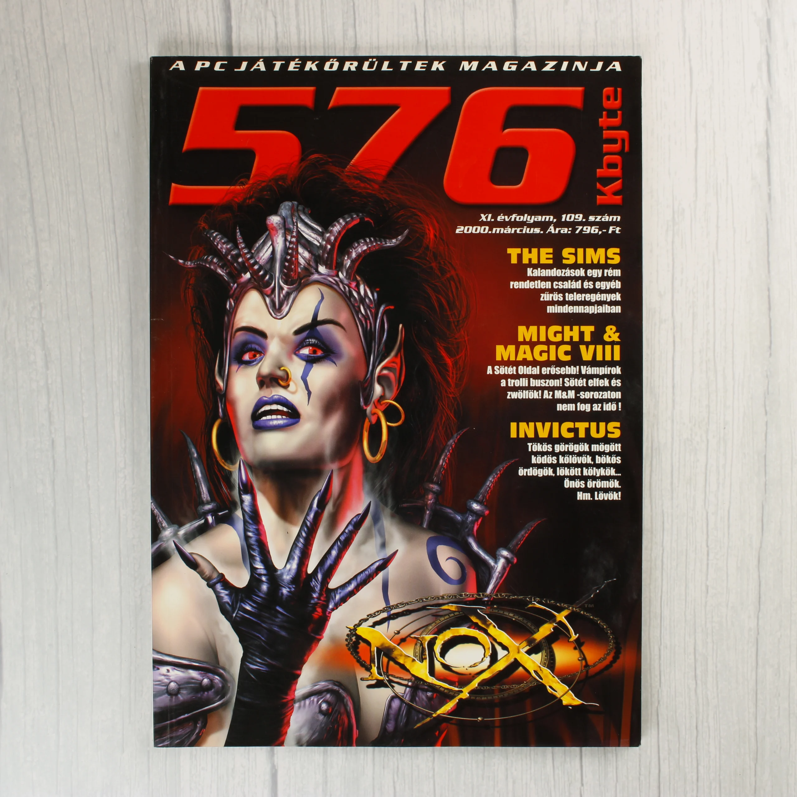 576 Kbyte videójáték magazin 2000. márciusi száma (109. kiadás). Címlapon a Nox, benne The Sims és Might & Magic VIII ismertetők.