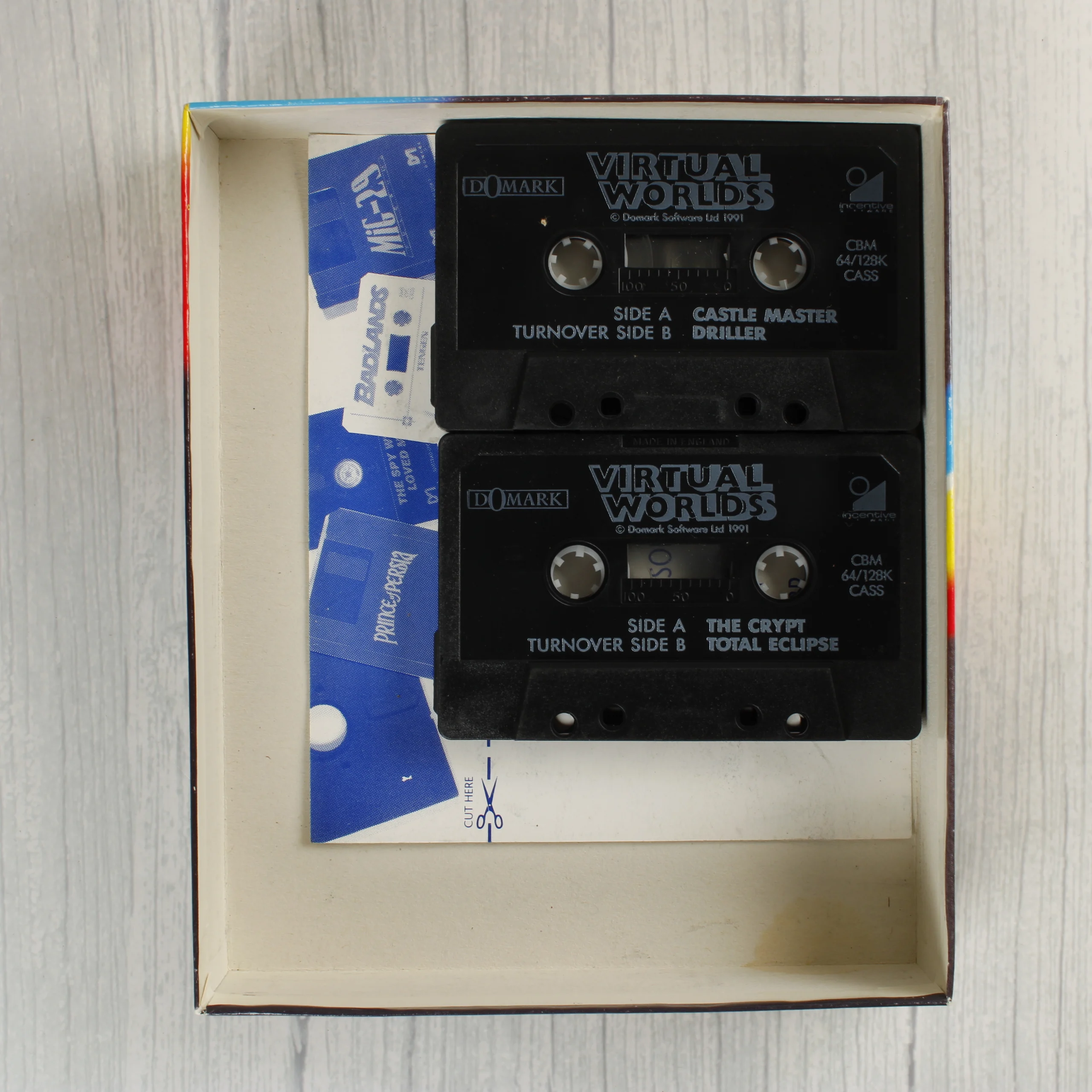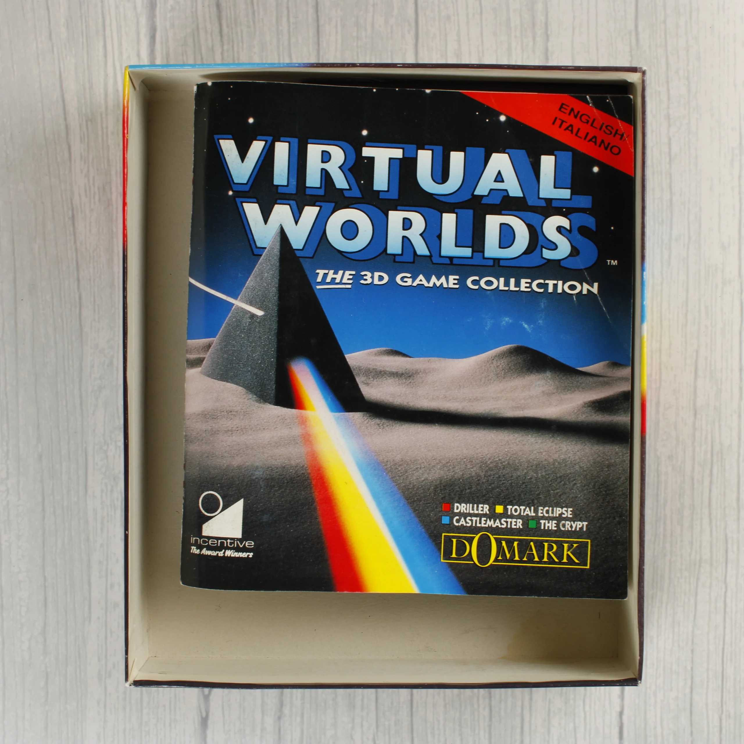 A Virtual Worlds: The 3D Game Collection egy videójáték válogatás Commodore 64 platformra, amelyet a Domark adott ki. A csomag négy játékot tartalmaz: Driller, Total Eclipse, Castle Master és The Crypt. A termék egy nagyméretű kartondobozban érkezik, amelynek elején egy piramis és egy színes fénysugár látható. A készlet tartalmazza a két darab fekete színű magnókazettát, amelyeken a játékok találhatók, valamint egy többnyelvű használati útmutatót és egy reklámanyagot. A doboz sarkai és élei láthatóan kopottak, a felületén kisebb karcolások és benyomódások észlelhetők, de a grafika és a feliratok jól olvashatóak maradnak. A kazetták és a belső papírok megkímélt állapotban vannak.
