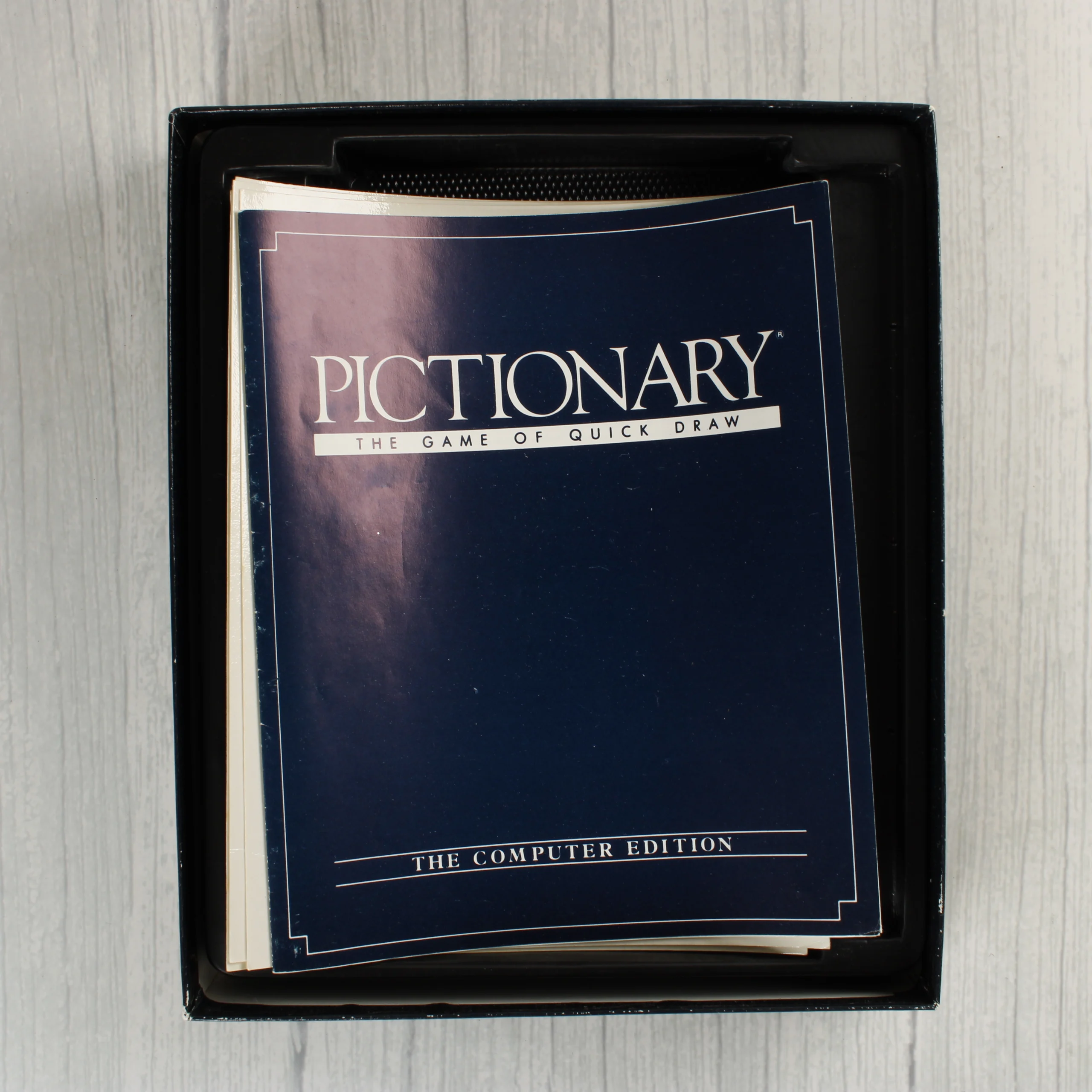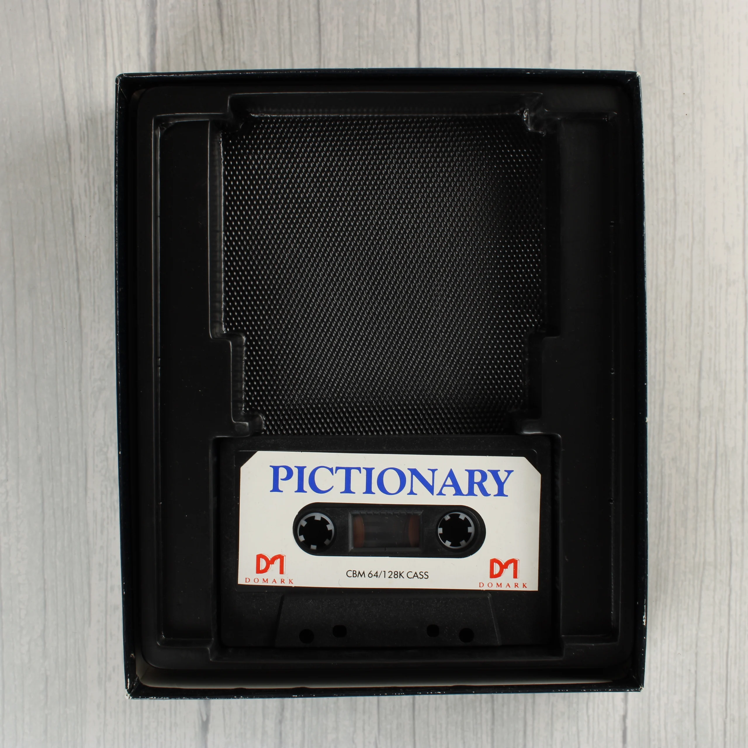 A Pictionary: The Computer Edition videójáték Commodore 64 és 128 rendszerekhez készült kiadása. A csomag egy sötétkék alapszínű, kartonból készült dobozt tartalmaz, amelyen fehér feliratok és egy sárga árcédula látható. A doboz belsejében egy fekete műanyag tálca található, amelyben a játékot tartalmazó magnetofonkazetta és a hozzá tartozó használati útmutató kapott helyet. A kazetta fehér címkéjén kék színnel szerepel a játék címe, alatta pedig a Domark logója látható. A doboz hátoldalán színes illusztráció mutatja be a játékmenetet egy korabeli számítógépes konfiguráción. A csomagolás élei mentén kopások és fehér foltok láthatóak, ami a korából adódó használat jele.