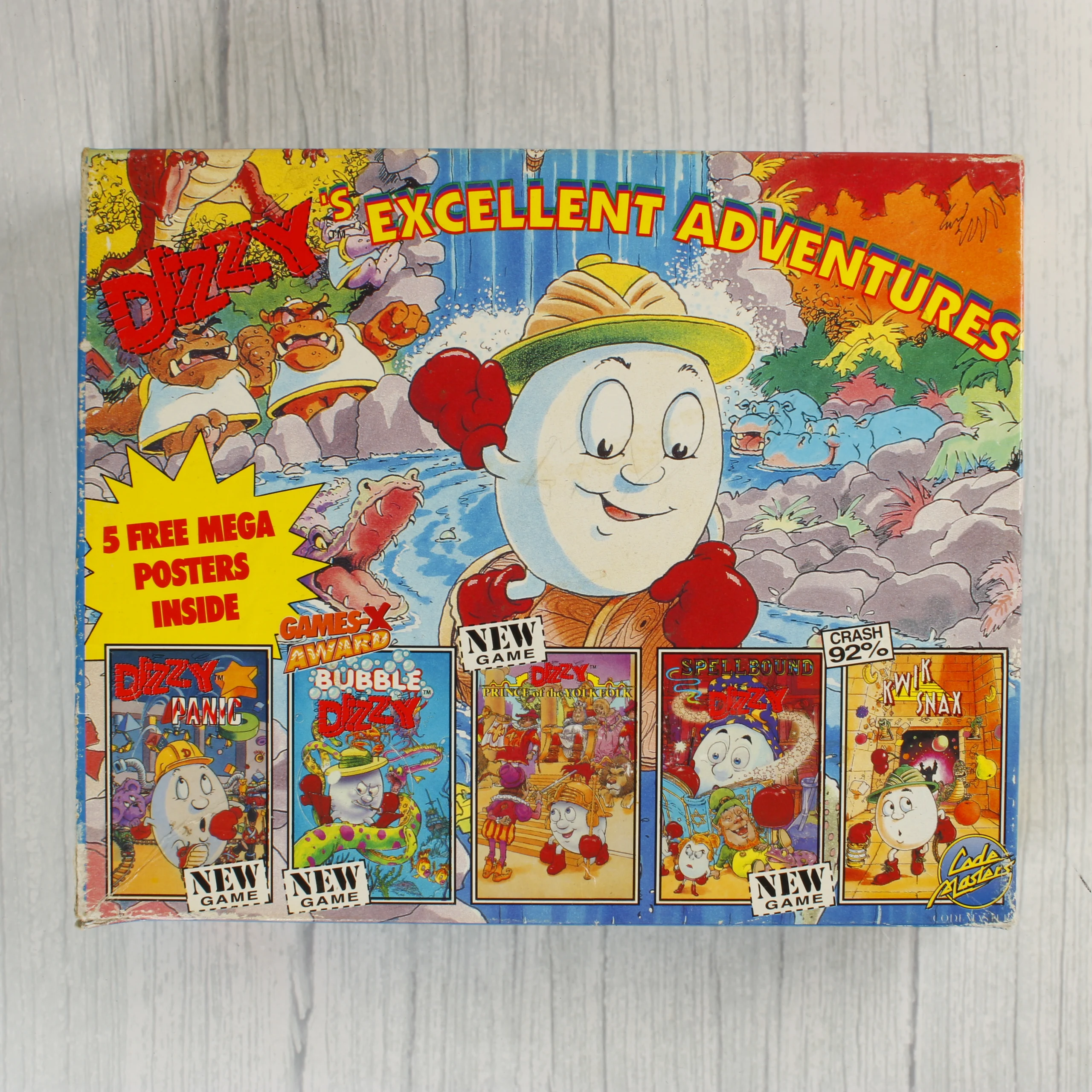 Dizzy's Excellent Adventures videójáték-gyűjtemény Atari ST platformra. 5 játékot tartalmazó csomag 4 darab 3,5 colos floppy lemezen, eredeti dobozban.