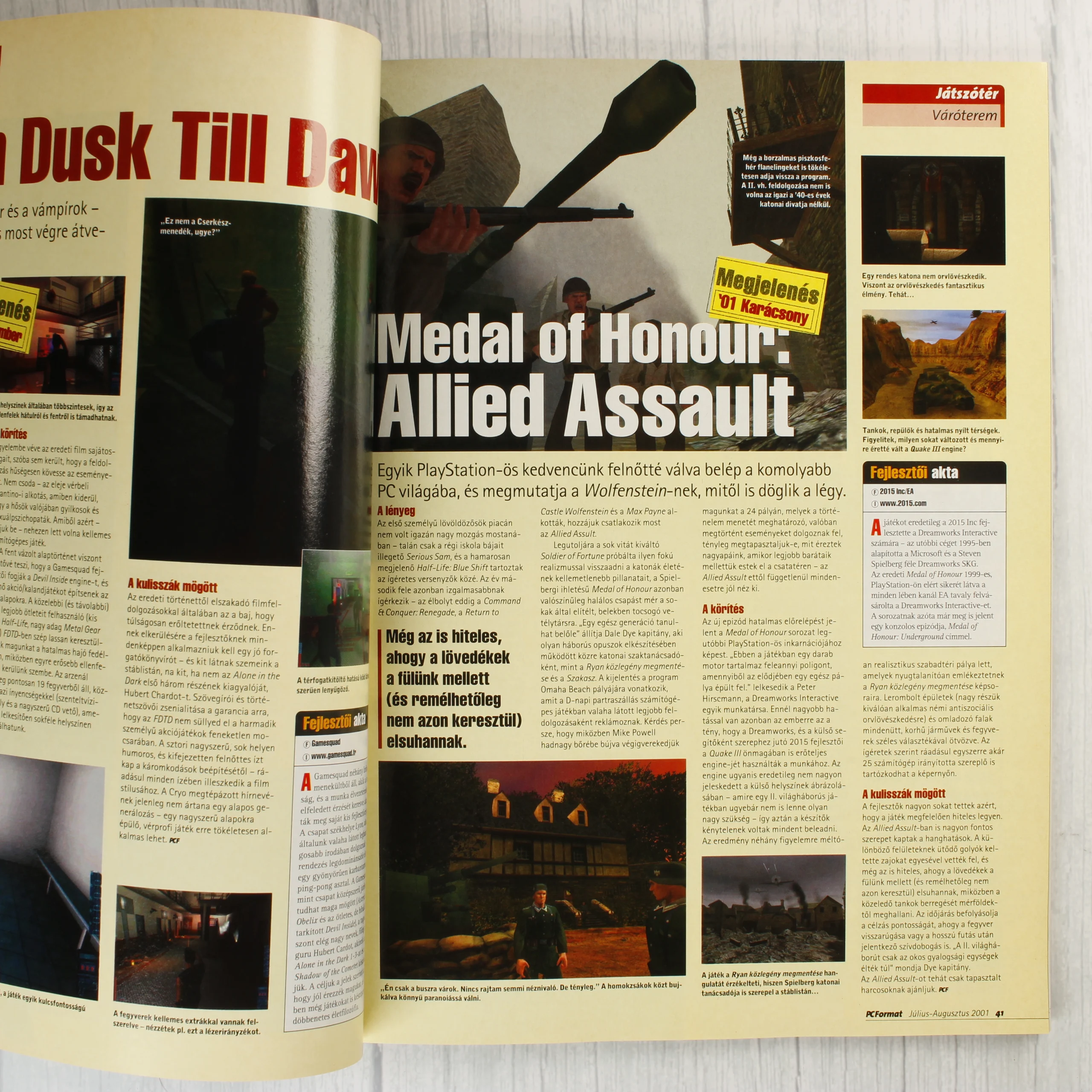 A PC Format magazin 2001. július-augusztusi száma, amely a 18. kiadás. A címlapon egy napszemüveges nő látható, valamint különböző technológiai és videójátékos témák címei, mint például az E3 riport, GeForce3 teszt és vírusvédelem. A borító színes, fényes papírra nyomtatott, a bal felső sarokban a piros PC Format logó dominál. A magazin belső oldalai hardver teszteket (például HP CD-író/DVD kombó) és videójáték bemutatókat (Medal of Honor: Allied Assault) tartalmaznak. A kiadvány magyar nyelvű, a United Média gondozásában jelent meg. A CD mellékletek nem részei a terméknek.