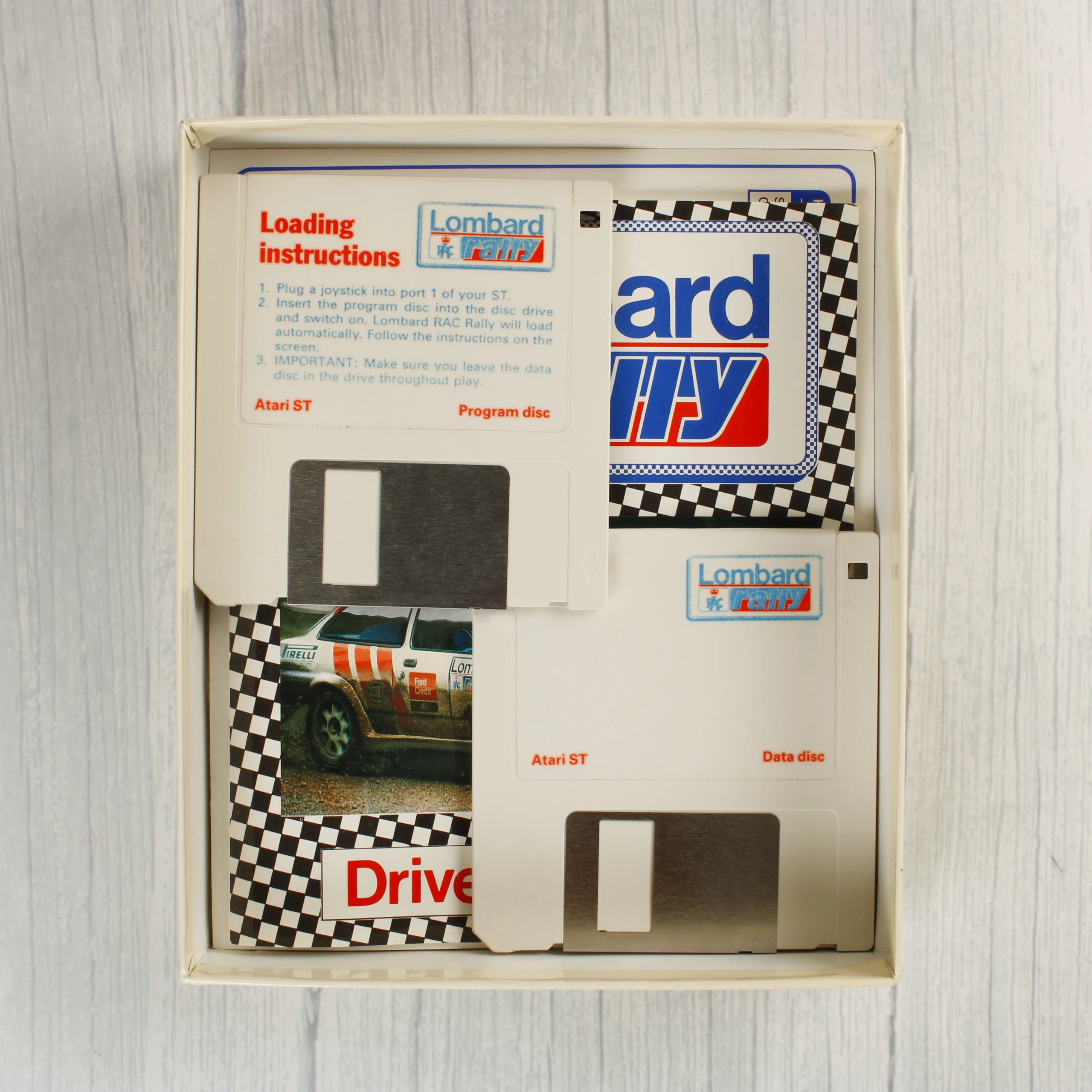 A Lombard RAC Rally videójáték Atari ST platformra készült kiadása eredeti kartondobozban. A csomag tartalmazza a két darab 3,5 colos floppy lemezt (Program disc és Data disc), valamint a Driver's Manual címet viselő használati útmutatót. A doboz elején egy Ford Sierra RS Cosworth versenyautó látható akció közben, a hátoldalon pedig játékmenet-képernyőképek és angol nyelvű leírás olvasható. A Mandarin Software és a Red Rat logói jól láthatóak a csomagoláson. A doboz és a tartozékok állapota megkímélt, a papír alapú részeken csak minimális elszíneződés és kopás tapasztalható.
