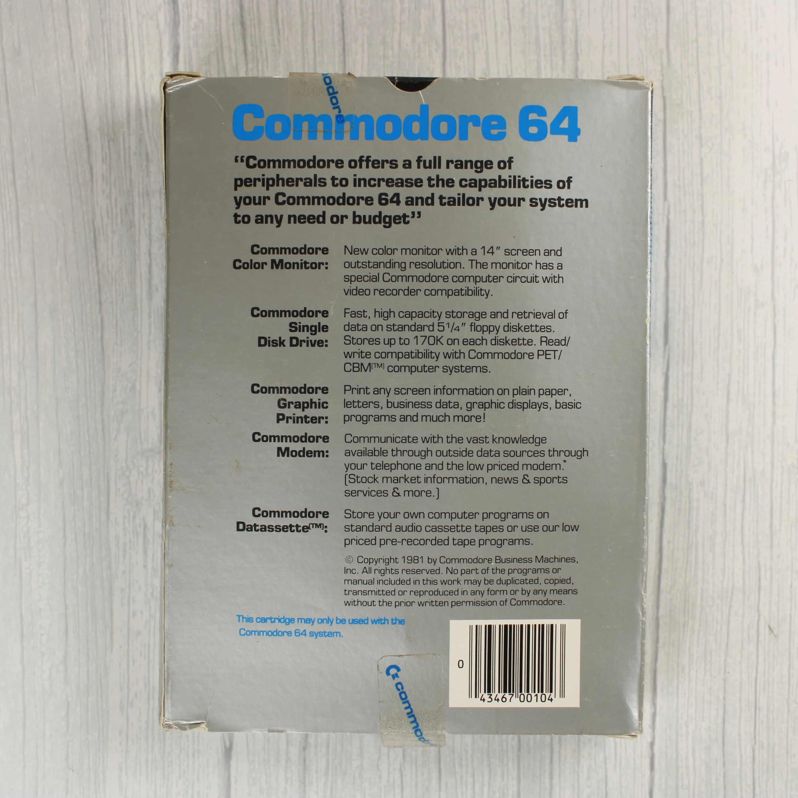 Eredeti Commodore 64 Visible Solar System szoftver cartridge dobozban. Retro számítástechnikai gyűjtői darab 1981-ből.