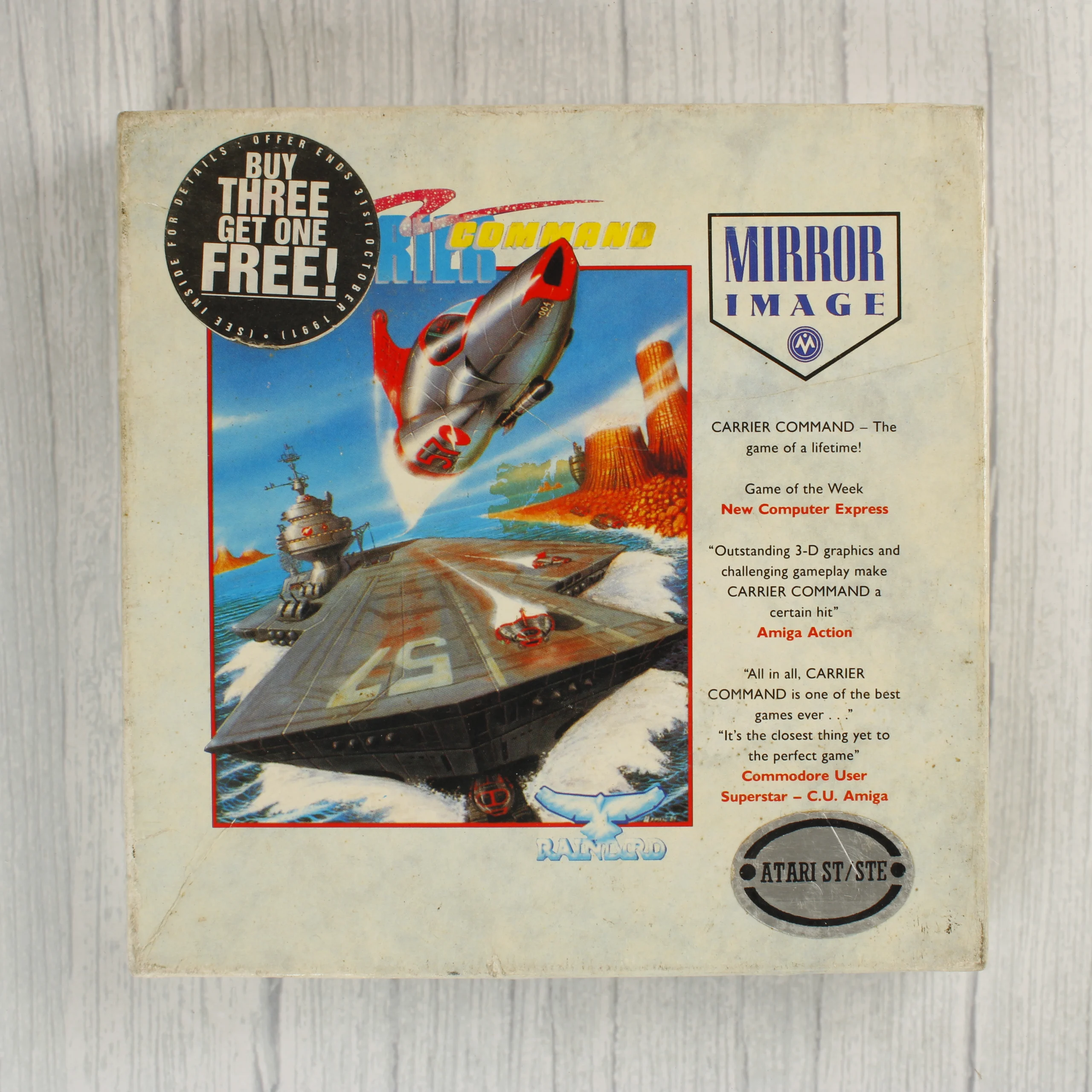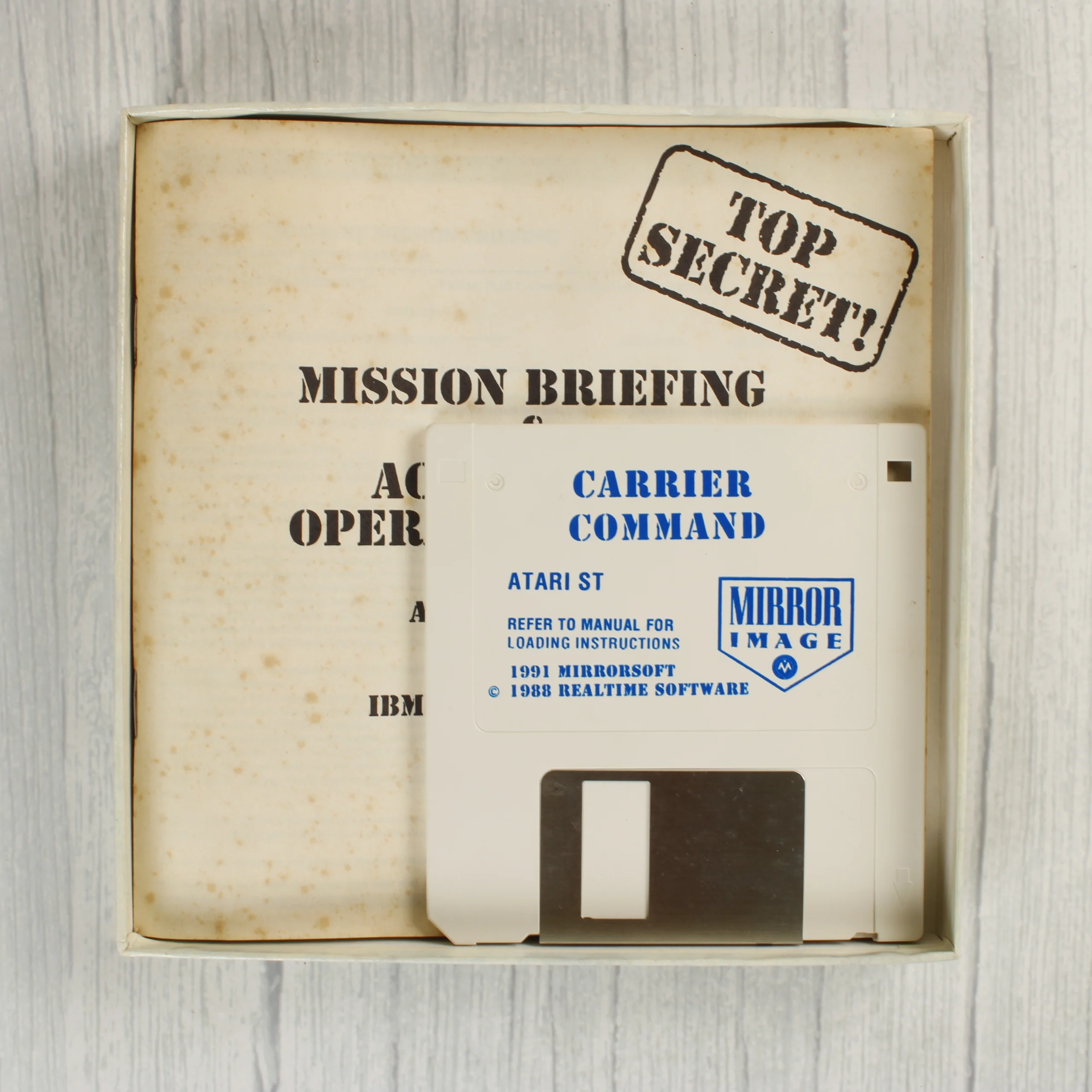 A Carrier Command című videójáték Atari ST/STE platformra készült kiadása. A csomag tartalmazza az eredeti kartondobozt, egy 3,5 colos floppy lemezt és a hozzá tartozó nyomtatott kézikönyvet. A doboz elején egy repülőgép-hordozó és egy futurisztikus repülő látható, valamint a Mirror Image és Rainbird logók. A hátoldalon többnyelvű leírás és képernyőmentések találhatók a játékról. A belső kézikönyv borítóján a Mission Briefing felirat és egy Top Secret pecsét látható. A floppy lemez fehér műanyag házas, kék felirattal.