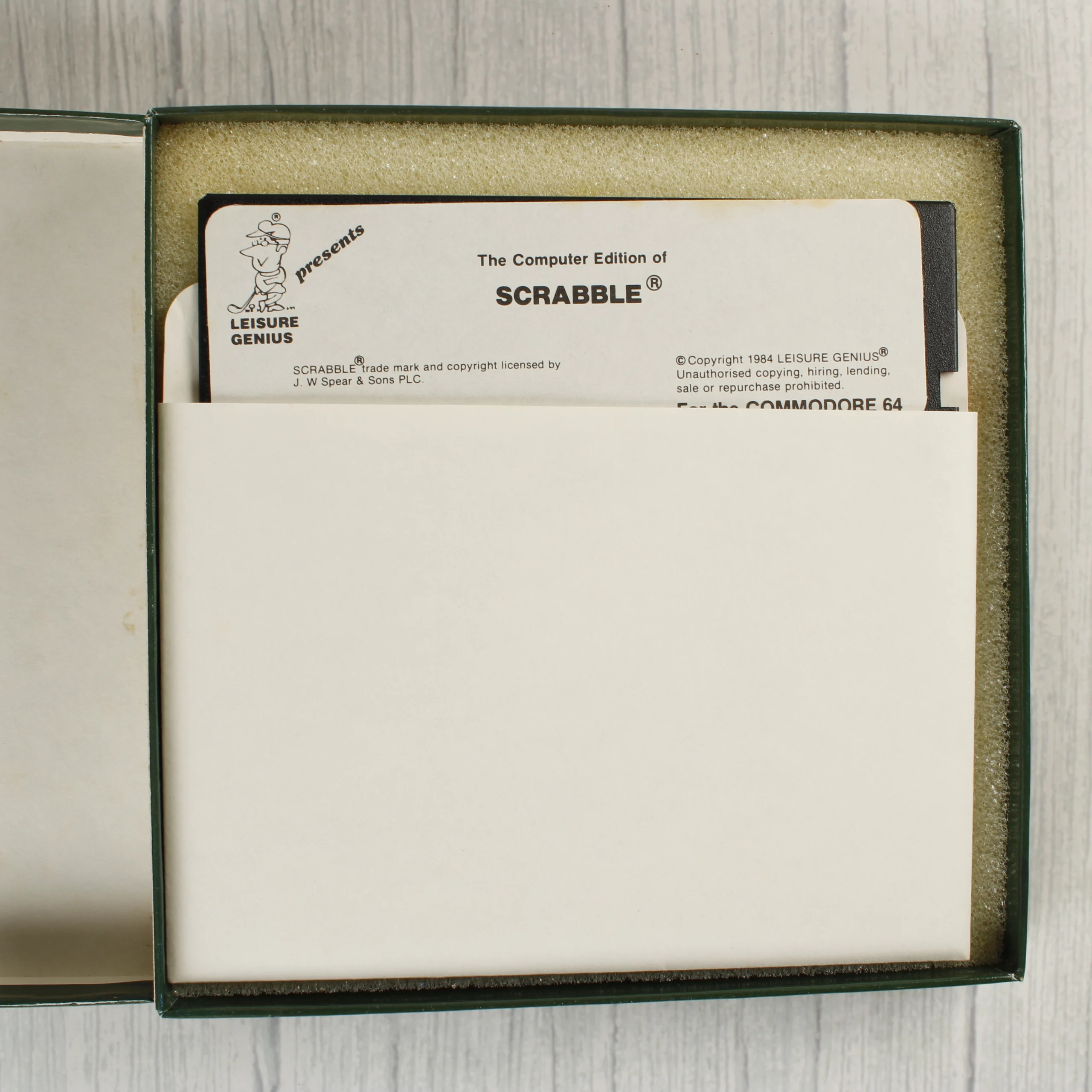 Scrabble, Commodore 64, C64, Leisure Genius, videójáték, retro, floppy lemez, 5.25 col