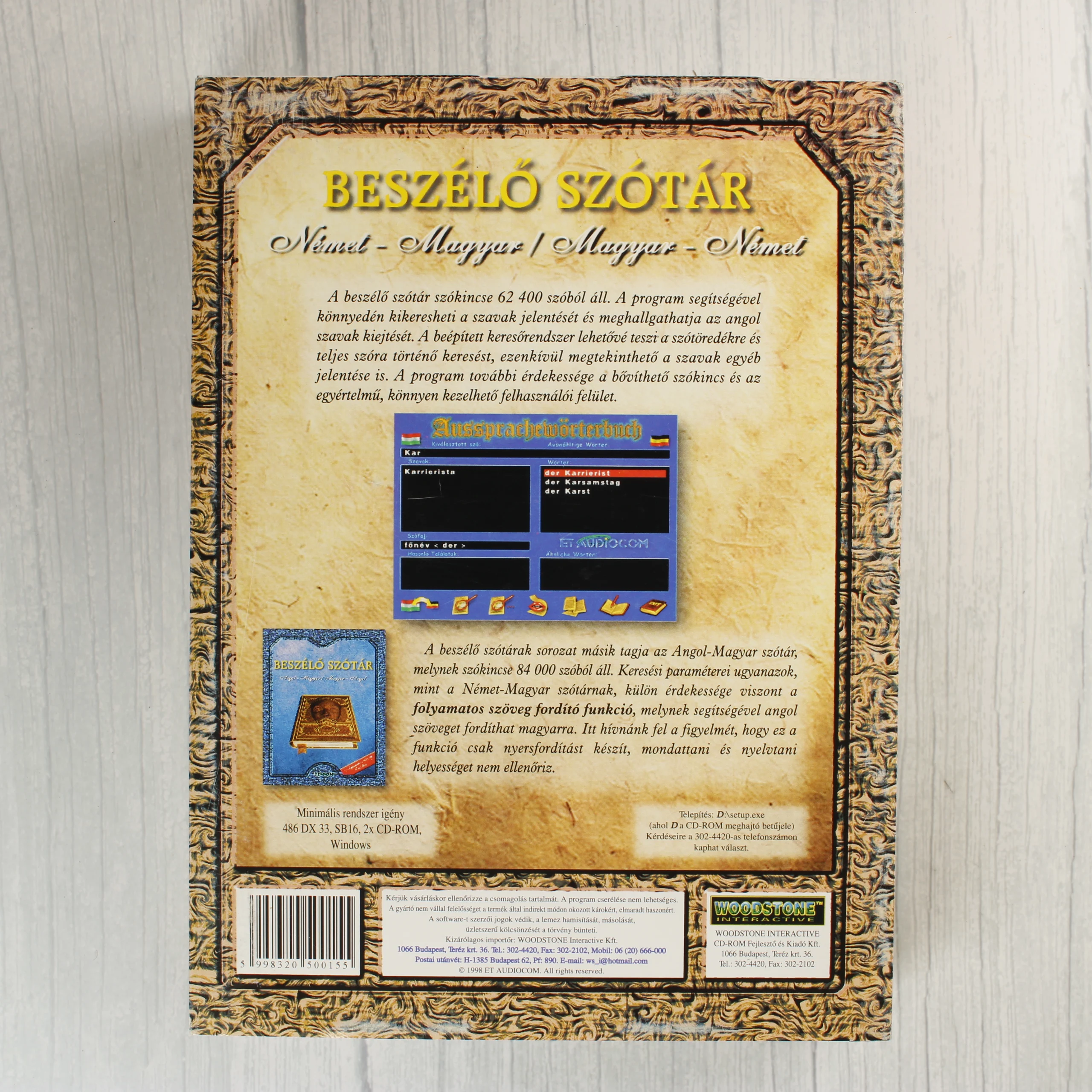 szótár, német, magyar, szoftver, retro, PC, CD-ROM, Woodstone Interactive, 1998