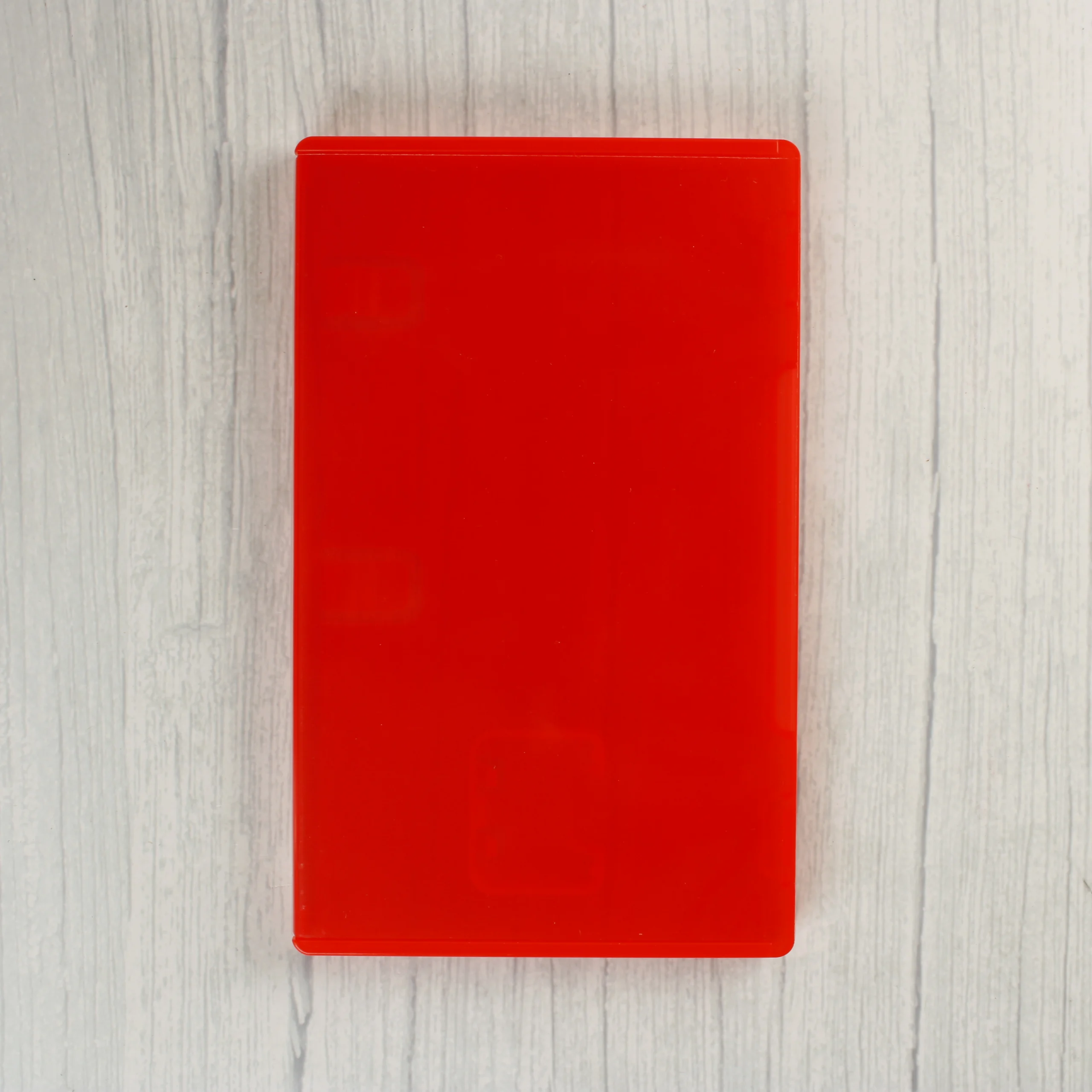 Áttetsző piros színű, polipropilénből készült videójáték tok, amely Nintendo Switch játékkártyák tárolására alkalmas. A tok külső felületén egy átlátszó fóliaréteg található a borítókép behelyezéséhez. Belső kialakítása tartalmaz egy dedikált rekeszt a játékkártya számára, valamint rögzítőfüleket egy kísérő füzet vagy kiskönyv elhelyezéséhez. A termék téglalap alakú, lekerekített sarkokkal és stabil zárómechanizmussal rendelkezik. A méretei 105 x 170 x 11 mm, ami megfelel a szabványos hordozható konzolos játéktokok formátumának.