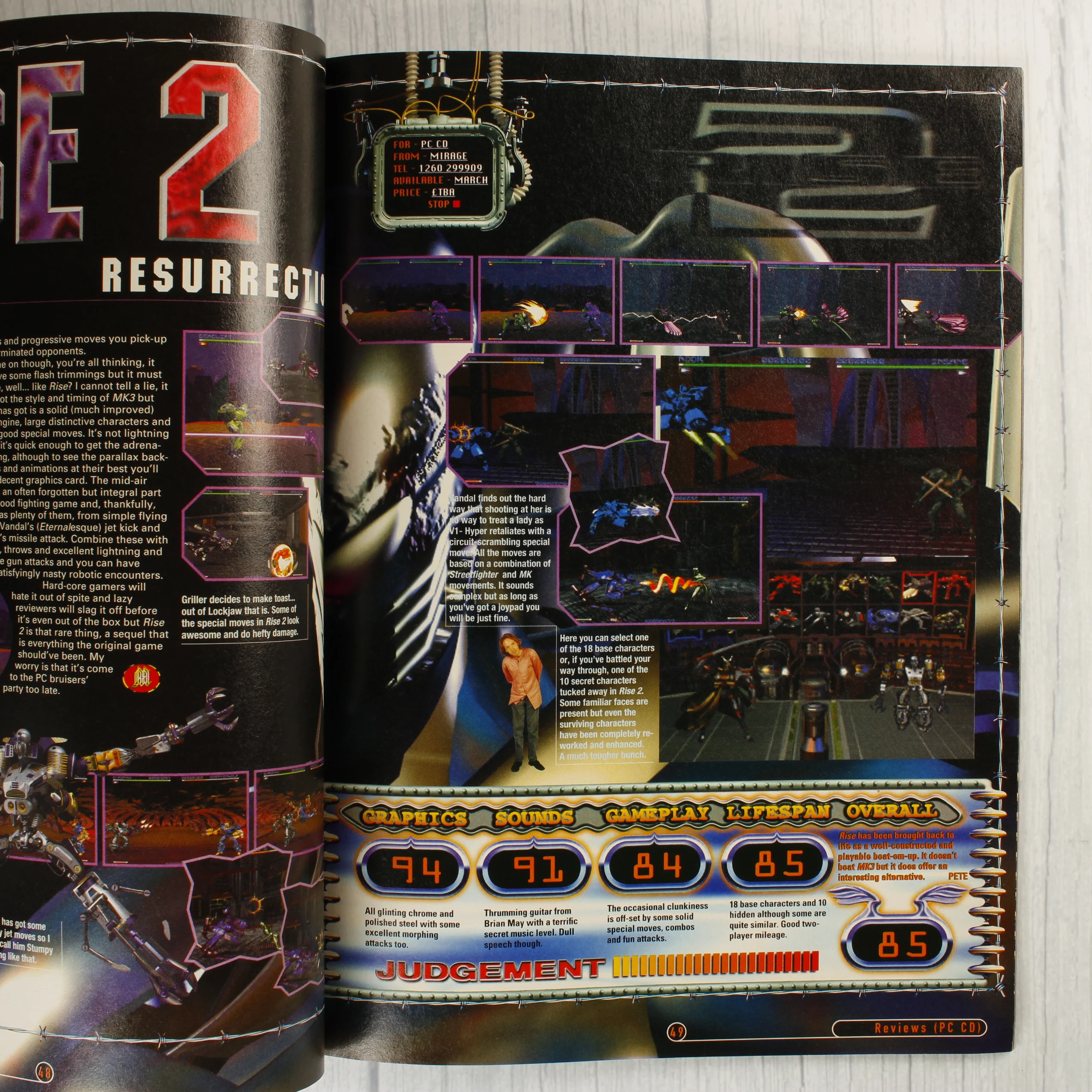 A Games Master magazin 1996. márciusi, 40. lapszáma. A színes borítón egy futballista látható ollózó mozdulat közben egy stadion felett, az Adidas Power Soccer játékot népszerűsítve. A címlapon olyan további címek szerepelnek, mint a Toy Story, az Alien Trilogy és a Killer Instinct 2. A magazin belső oldalai videójáték-ismertetőket tartalmaznak, többek között a Revolution X és a Rise 2: Resurrection játékokról, képernyőmentésekkel és pontszámokkal illusztrálva. A kiadvány angol nyelvű, az Egyesült Királyságban jelent meg. A papír állapota a képek alapján megkímélt, a sarkok és élek épek, jelentős gyűrődés vagy szakadás nem látható.