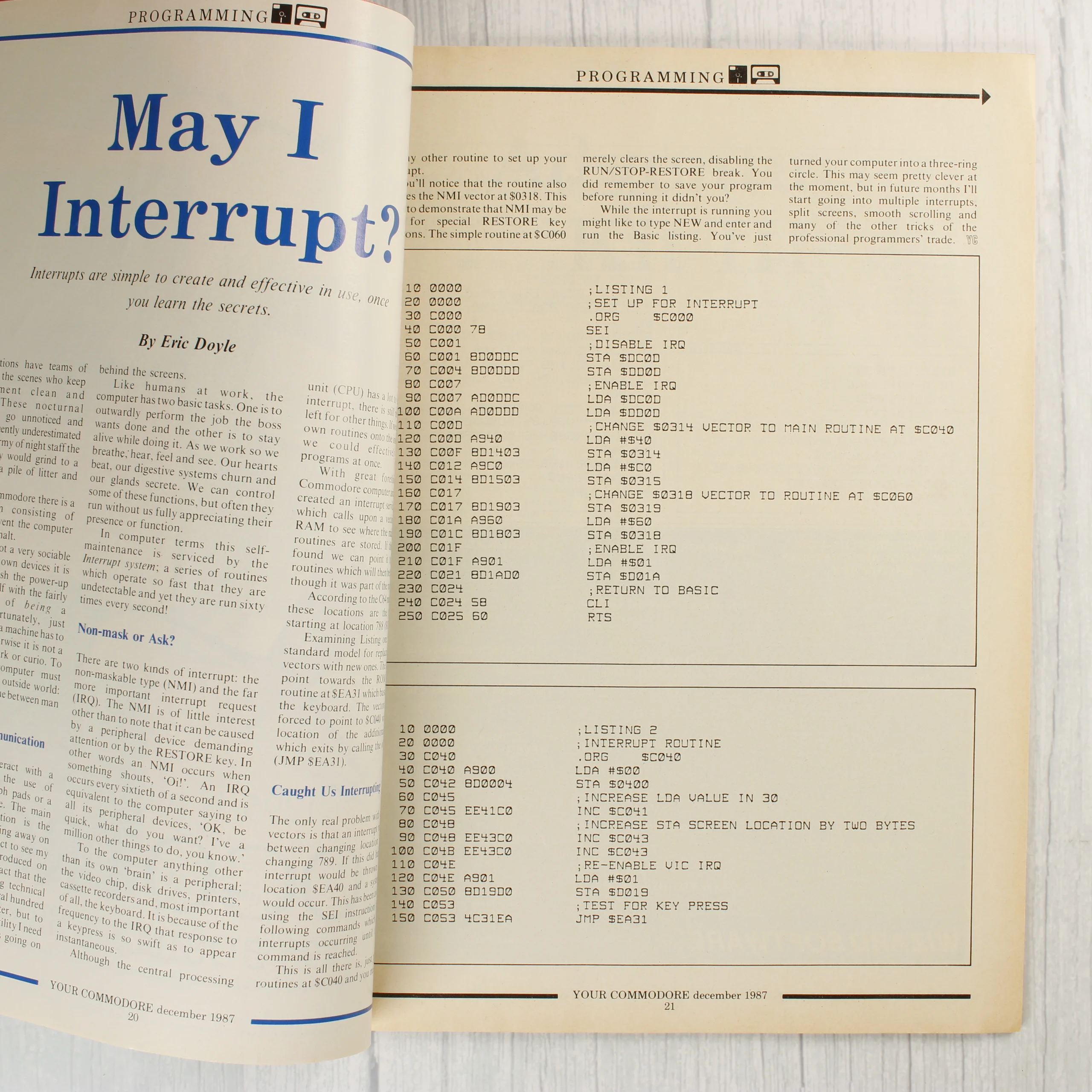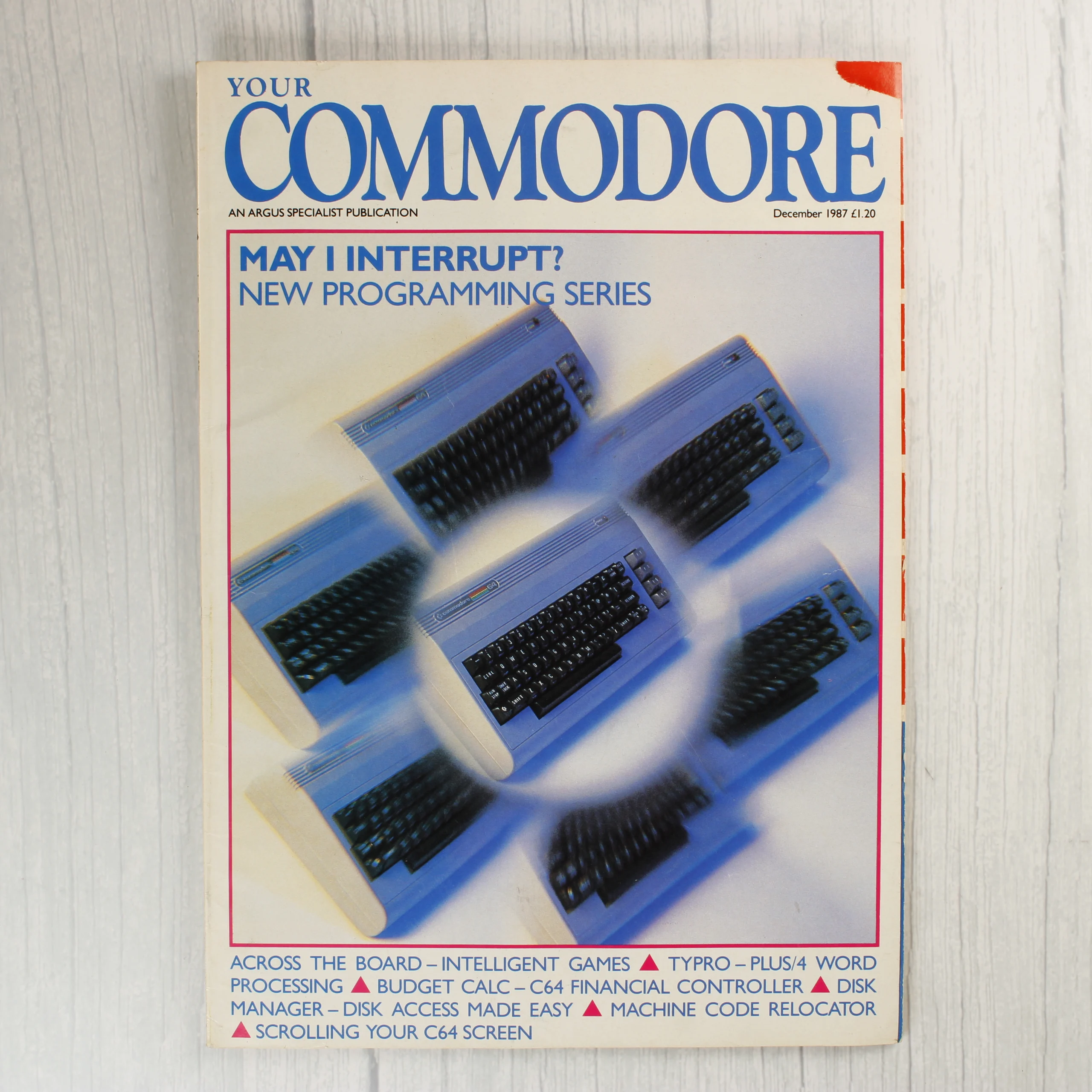 A Your Commodore magazin 1987. decemberi száma, amely az Argus Specialist Publication gondozásában jelent meg. A címlapon több Commodore 64 számítógép látható kék tónusú grafikán, a főcím pedig egy új programozási sorozatot hirdet. A belső oldalakon Mastertronic videójáték-ismertetők, hirdetések és technikai programozási kódok találhatók. A kiadvány angol nyelvű, de a korszak magyar számítástechnikai kultúrájának is meghatározó darabja. A papír az éleknél enyhén sárgult, ami a korából adódik, de a szövegek és az illusztrációk tisztán kivehetők.