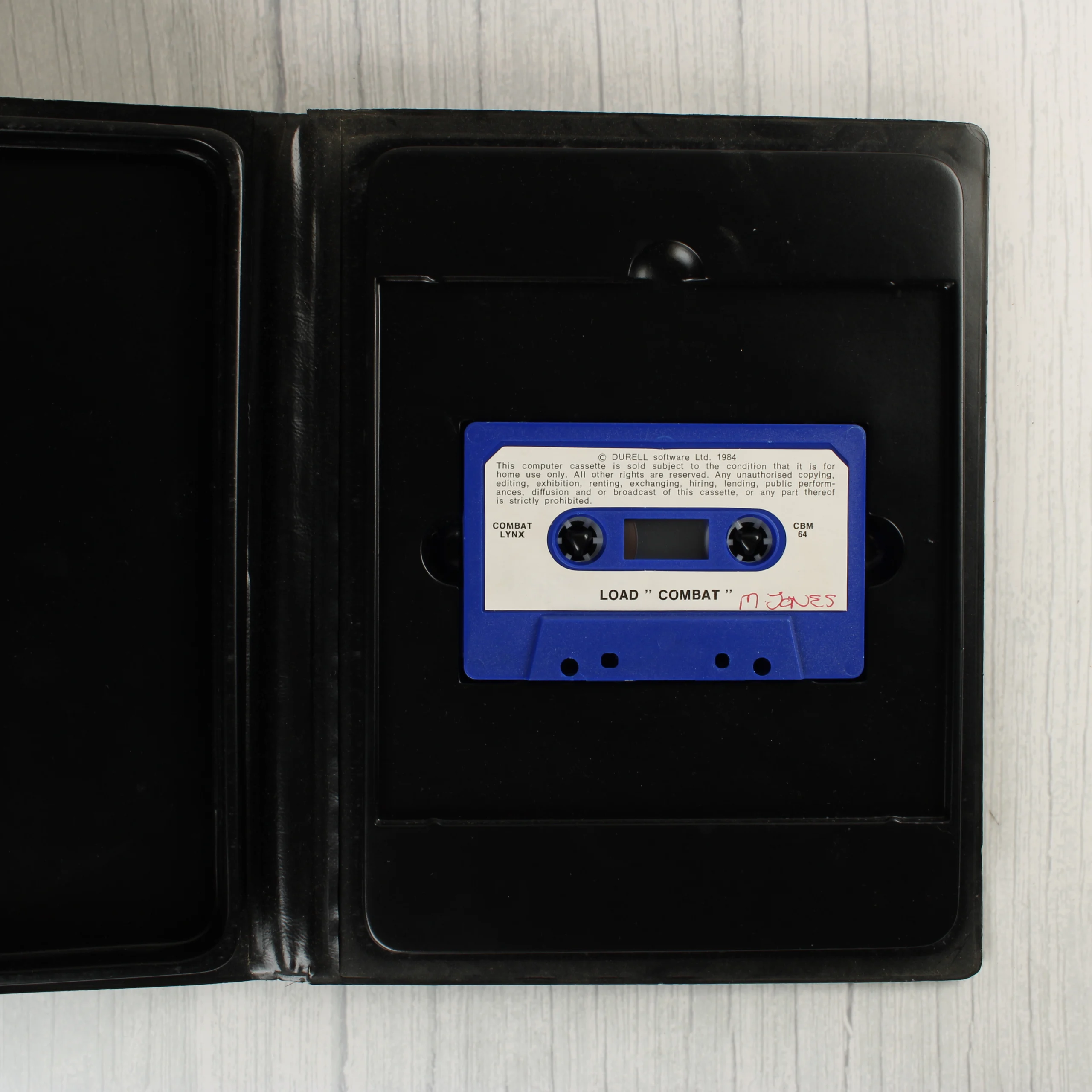 A Durell Software által kiadott Combat Lynx videójáték Commodore 64 platformra. A csomag egy fekete műanyag tokot tartalmaz, amelyben egy kék színű, fehér címkés magnókazetta található. A borítón harci helikopterek láthatóak bevetés közben, dombos táj felett. A hátoldalon részletes angol nyelvű leírás olvasható a játékról, valamint egy illusztráció egy felrobbanó tankról. A belső kazetta címkéjén kézzel írt név látható piros tollal. A tok és a borító használt, de ép állapotú, a műanyag fólián enyhe hullámosodás és kopásnyomok figyelhetőek meg.