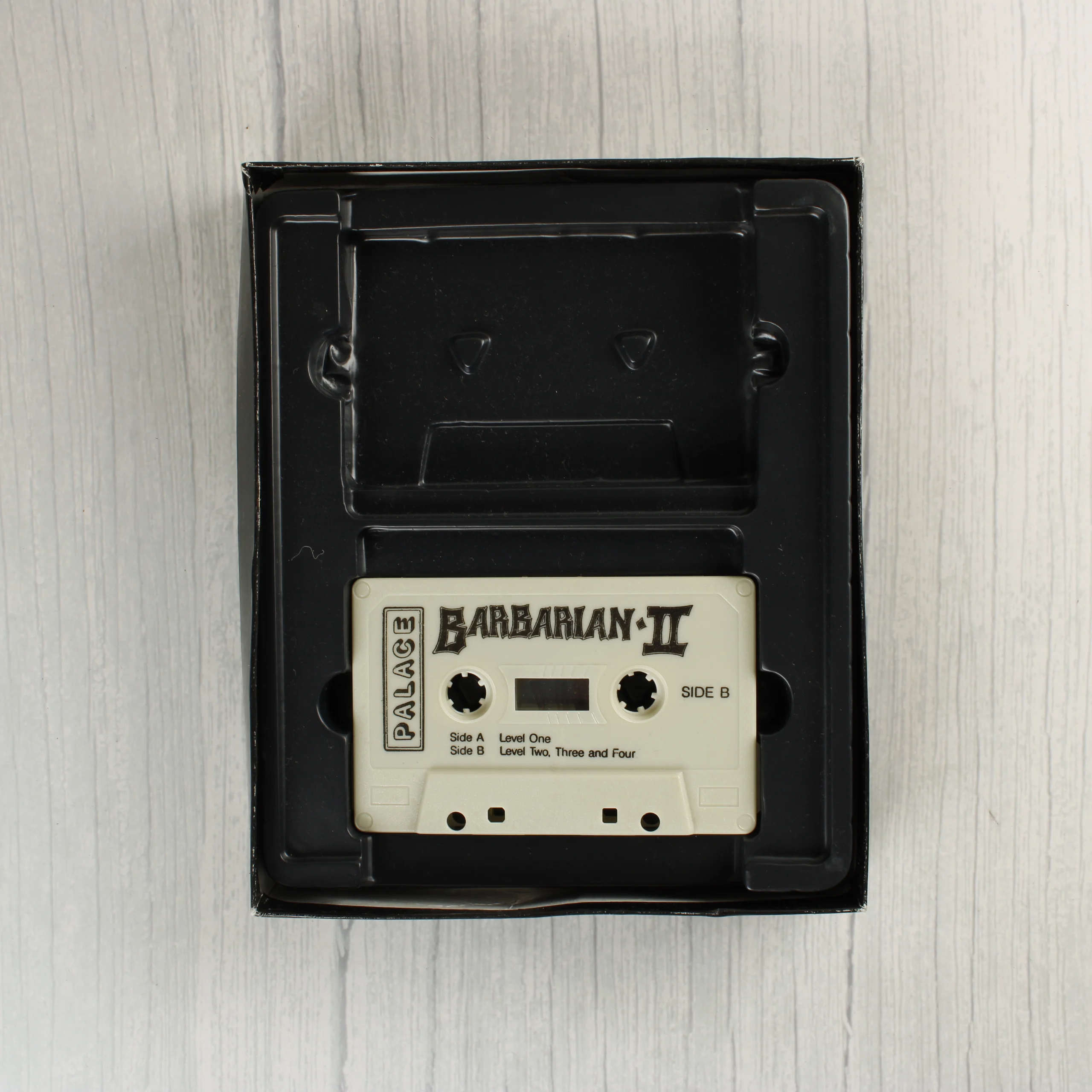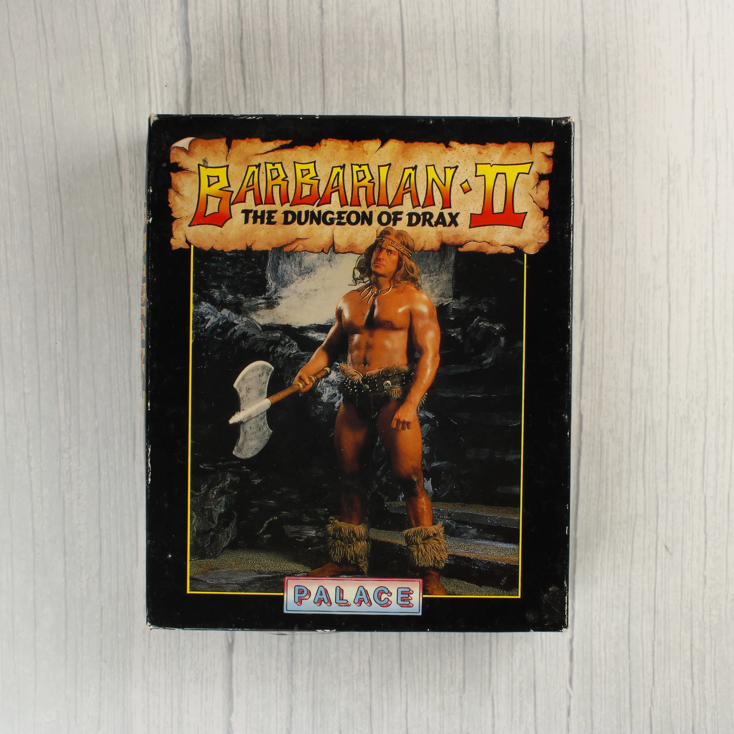 A Barbarian II: The Dungeon of Drax című videójáték Commodore 64 platformra készült kiadása. A csomag egy fekete kartondobozt tartalmaz, amelynek előlapján a játék címe és egy baltát tartó harcos látható. A hátoldalon különböző számítógépes platformokról (Atari ST, Commodore 64, Amstrad, Spectrum) származó képernyőmentések, valamint angol és francia nyelvű leírás olvasható. A doboz belsejében egy fekete műanyag tálca található, amelyben egy fehér színű magnókazetta helyezkedik el. A kazetta címkéjén a Palace logó és a játék címe szerepel, valamint a két oldal tartalmának megjelölése. A csomagoláson látható a PAL 1091 katalógusszám és a vonalkód is.