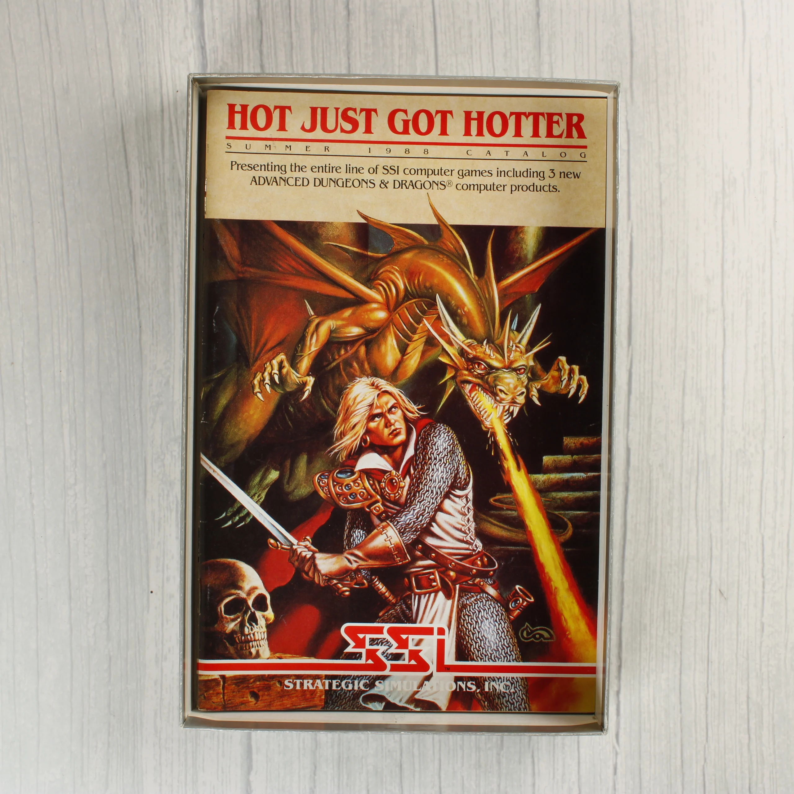 Az Advanced Dungeons & Dragons: Heroes of the Lance egy 1988-as kiadású videójáték Atari ST platformra. A csomag tartalmazza az eredeti illusztrált kartondobozt, három darab kék színű 3,5 colos floppy lemezt (Disk A, B és C jelöléssel), valamint egy színes SSI termékkatalógust. A doboz elején sárkányon lovagló harcos látható, a hátoldalon pedig játékmenet-fotók és angol nyelvű leírás olvasható. A doboz sarkain és élein látható némi kopás, de a grafika ép és a színek élénkek. A lemezek címkéi tiszták, a fém védőlemezek épek. A belső katalógus jó állapotban maradt meg. A termék az SSI (Strategic Simulations, Inc.) gondozásában jelent meg.