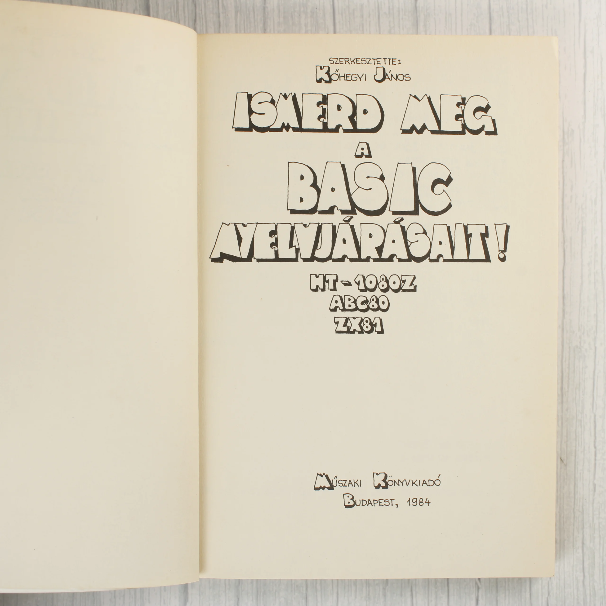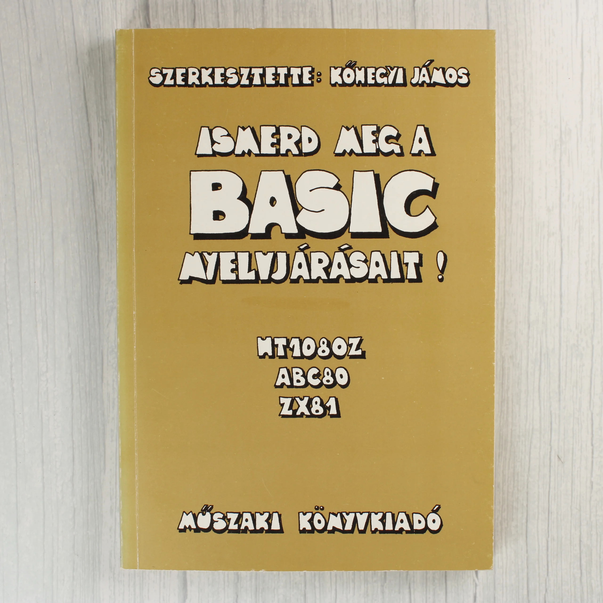 A Műszaki Könyvkiadó gondozásában megjelent Ismerd meg a BASIC nyelvjárásait! című szakkönyv. A sárga borítójú, puhafedeles kiadvány a HT-1080Z, ABC80 és ZX81 számítógépek BASIC programozási nyelvének sajátosságait mutatja be. A borítón és a belső oldalakon fekete, stilizált betűtípus látható. A könyv szerkesztője Kőhegyi János. A belső oldalak enyhén sárgultak, ami a korából adódó természetes jelenség. A borító élei és sarkai minimális kopást mutatnak, de a kötet szerkezetileg ép és tiszta állapotban van.