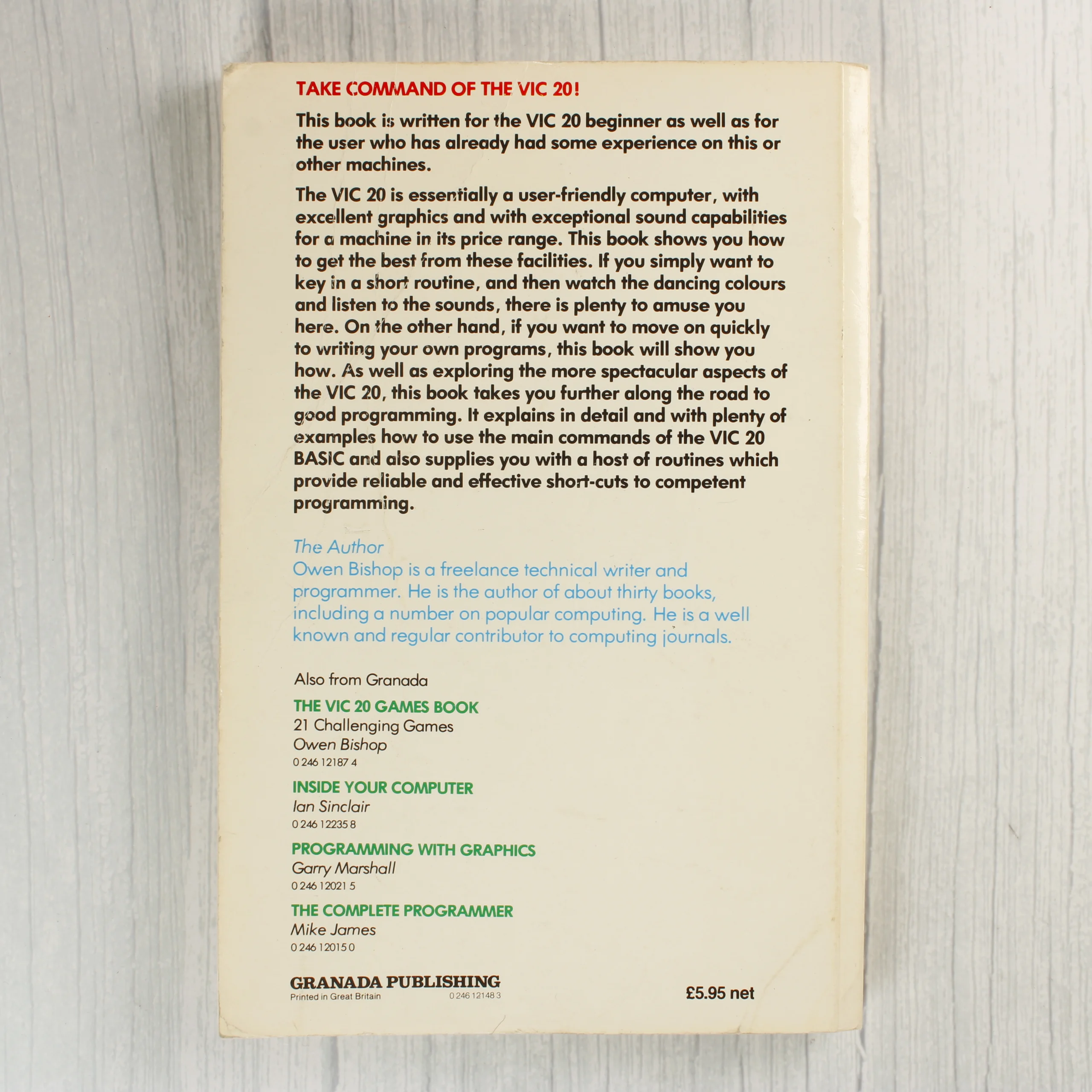 Owen Bishop Get More From The VIC 20 című programozási útmutatója Commodore VIC-20 számítógéphez a Granada Publishing kiadásában.