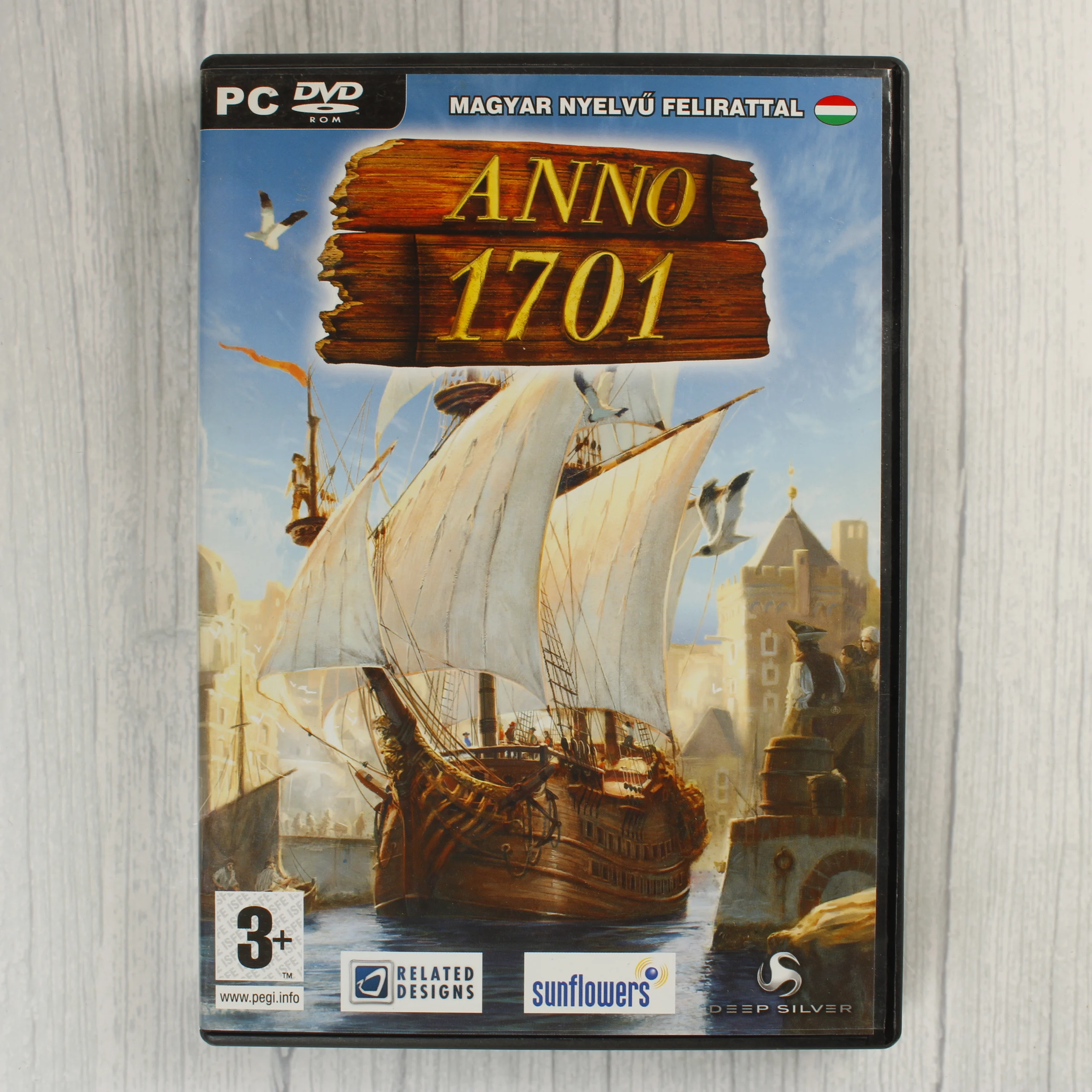 Az Anno 1701 egy PC-re megjelent stratégiai videójáték, amely normál fekete műanyag tokban található. A borítón egy korabeli vitorláshajó látható egy kikötőváros előtt, a cím pedig egy fa táblát imitáló grafikán olvasható. A kiadvány magyar nyelvű felirattal rendelkezik, amit a borító felső részén látható magyar zászló is jelez. A tok belsejében egy darab DVD-ROM lemez található, amelynek szitázása megegyezik a borító grafikájával. A hátoldalon magyar nyelvű leírás, játékmenet-képek és a rendszerkövetelmények olvashatók. A termék PEGI 3-as korhatár-besorolással rendelkezik.