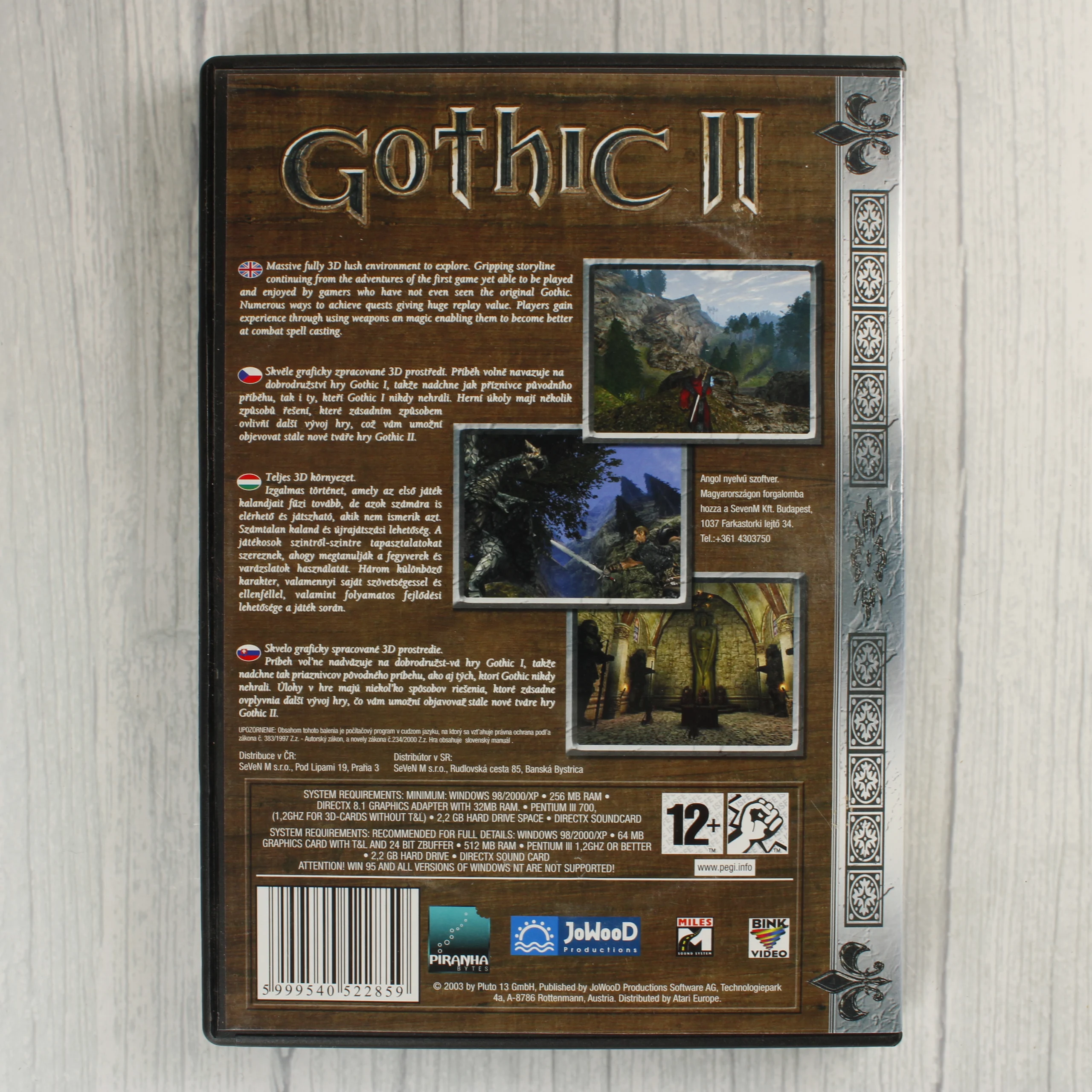 Gothic II PC-s videójáték 3 lemezes kiadásban, JoWooD kiadás, magyar nyelvű leírással a borítón.