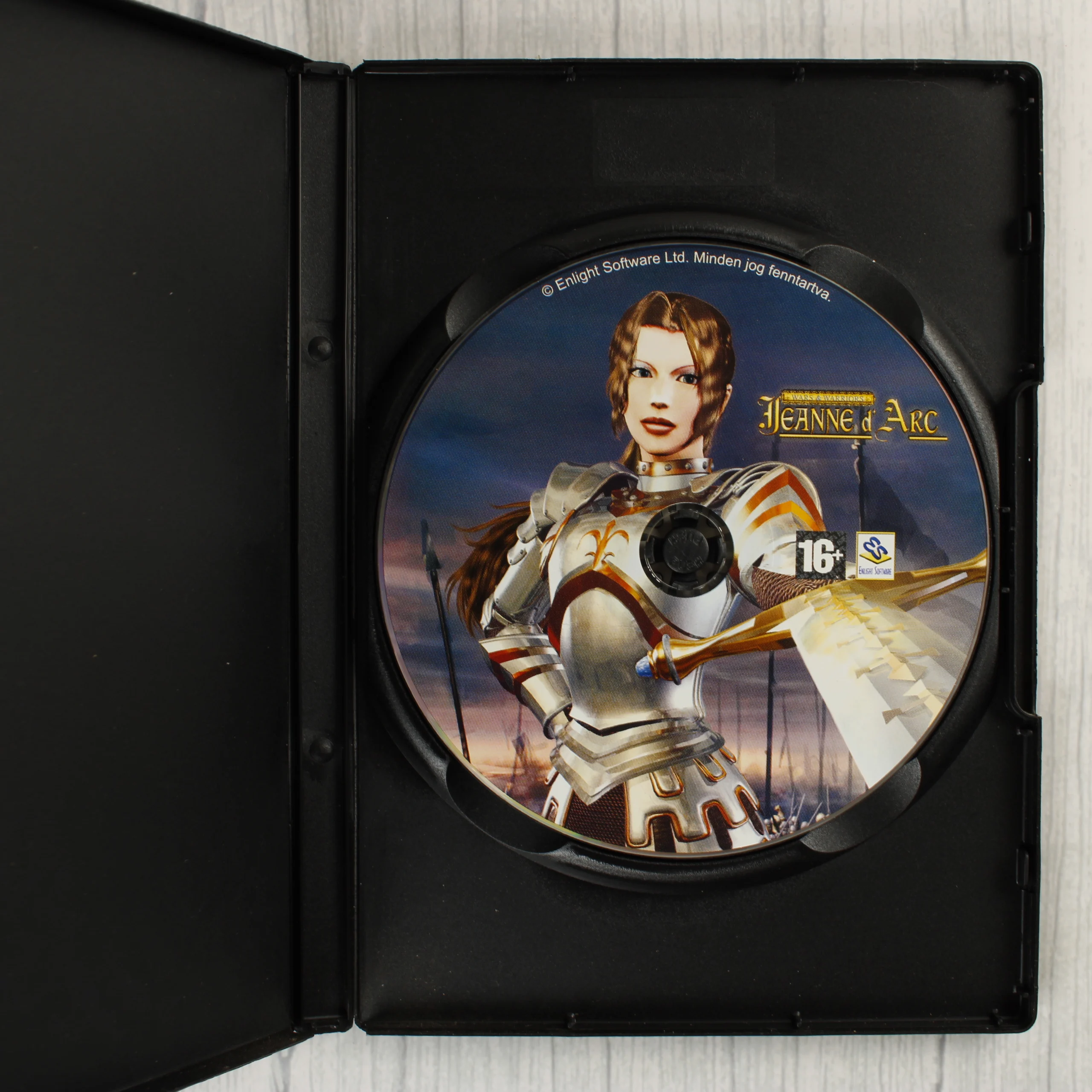 A Wars & Warriors: Jeanne d'Arc című PC-s videójáték magyar nyelvű kiadása. A termék egy fekete műanyag tokban található, amely tartalmazza a játékot hordozó optikai lemezt. A borítón a páncélozott Jeanne d'Arc látható karddal a kezében, a háttérben egy hadsereggel. A tok hátoldalán magyar nyelvű leírás, játékmenet-képek és a rendszerkövetelmények olvashatók. A kiadvány PEGI 16-os korhatár-besorolással rendelkezik. A lemez felülete a borító grafikáját idézi, rajta a fejlesztő Enlight Software logójával.