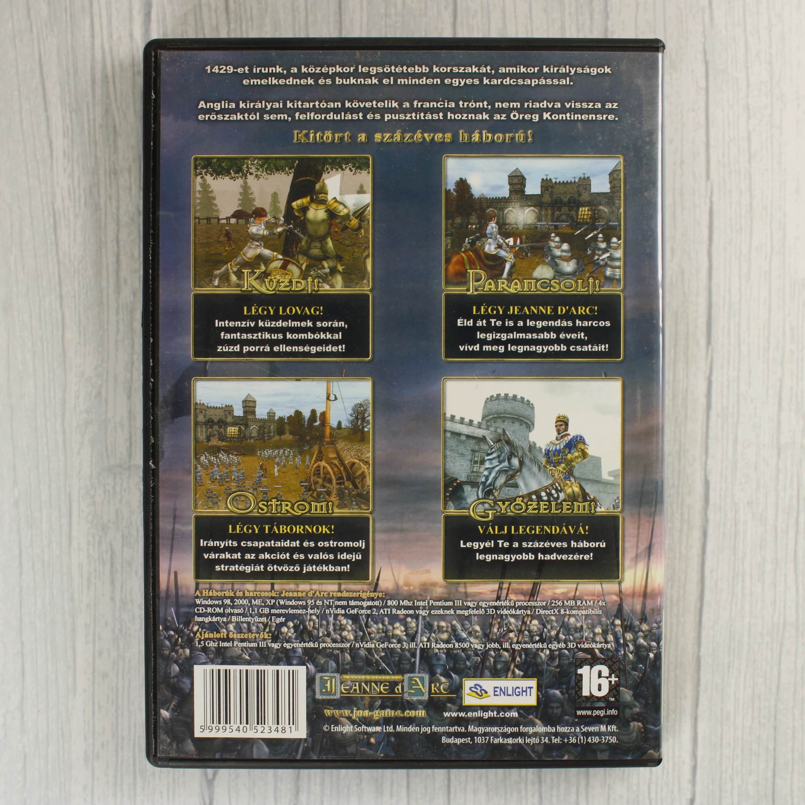 Wars & Warriors: Jeanne d'Arc magyar nyelvű PC videójáték fekete műanyag tokban, optikai lemezen, PEGI 16-os besorolással.