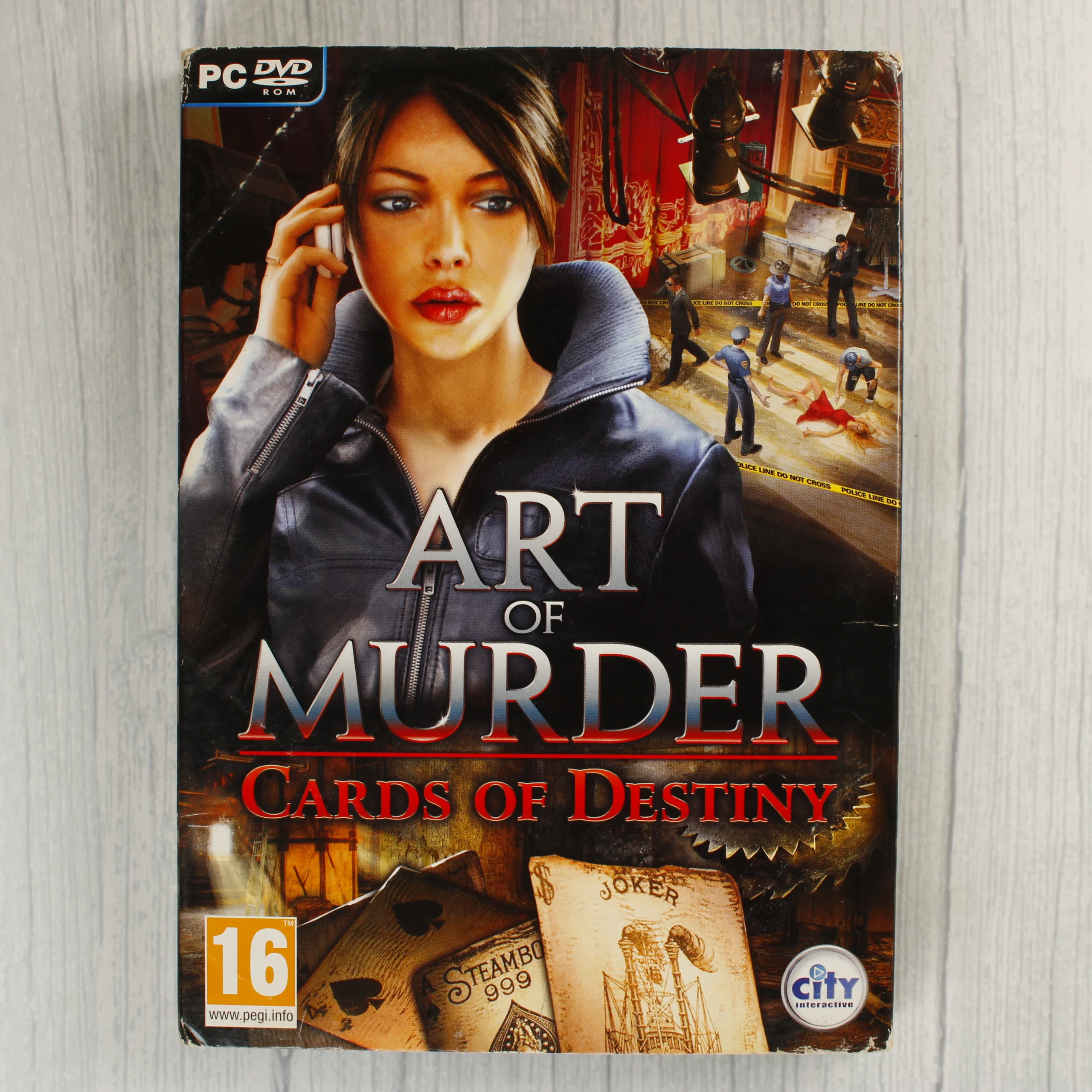 Az Art of Murder: Cards of Destiny egy PC-re megjelent videójáték, amely normál műanyag tokban, eredeti borítóval és kézikönyvvel rendelkezik. A csomag tartalmazza a játékot hordozó DVD-ROM lemezt is. A borítón egy barna hajú női karakter látható, a háttérben egy bűnügyi helyszín és játékkártyák jelennek meg. A tok hátoldalán magyar nyelvű leírás olvasható a történetről, valamint a minimális rendszerigények is fel vannak tüntetve. A kiadvány PEGI 16-os korhatár-besorolással rendelkezik. A City Interactive által kiadott szoftver fizikai állapota használt, a papírborító szélein és sarkain kisebb kopások és benyomódások láthatóak, de a lemez és a belső tartalom épnek tűnik.