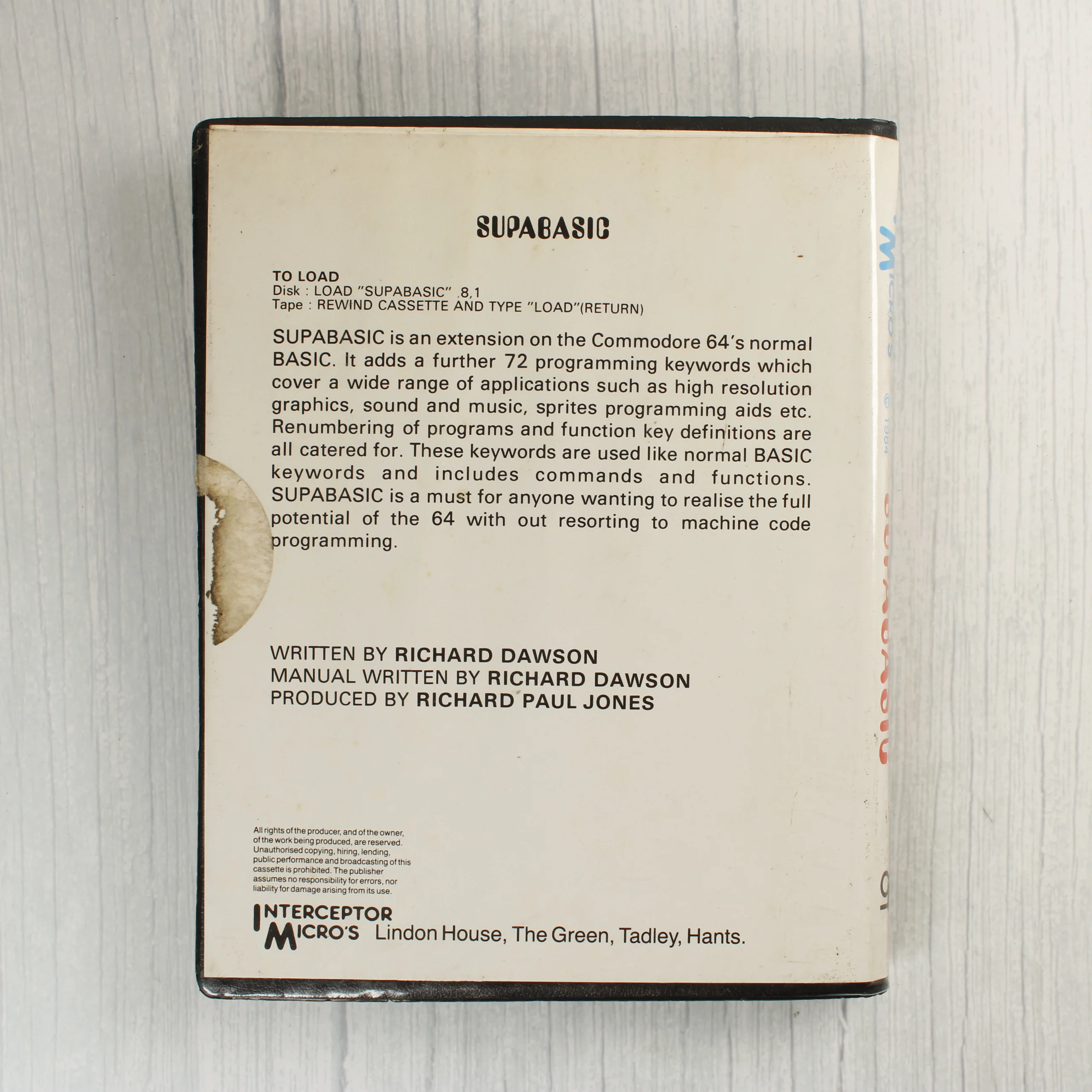 Supabasic, Commodore 64, C64, Interceptor Software, retro szoftver, kazetta, 1984