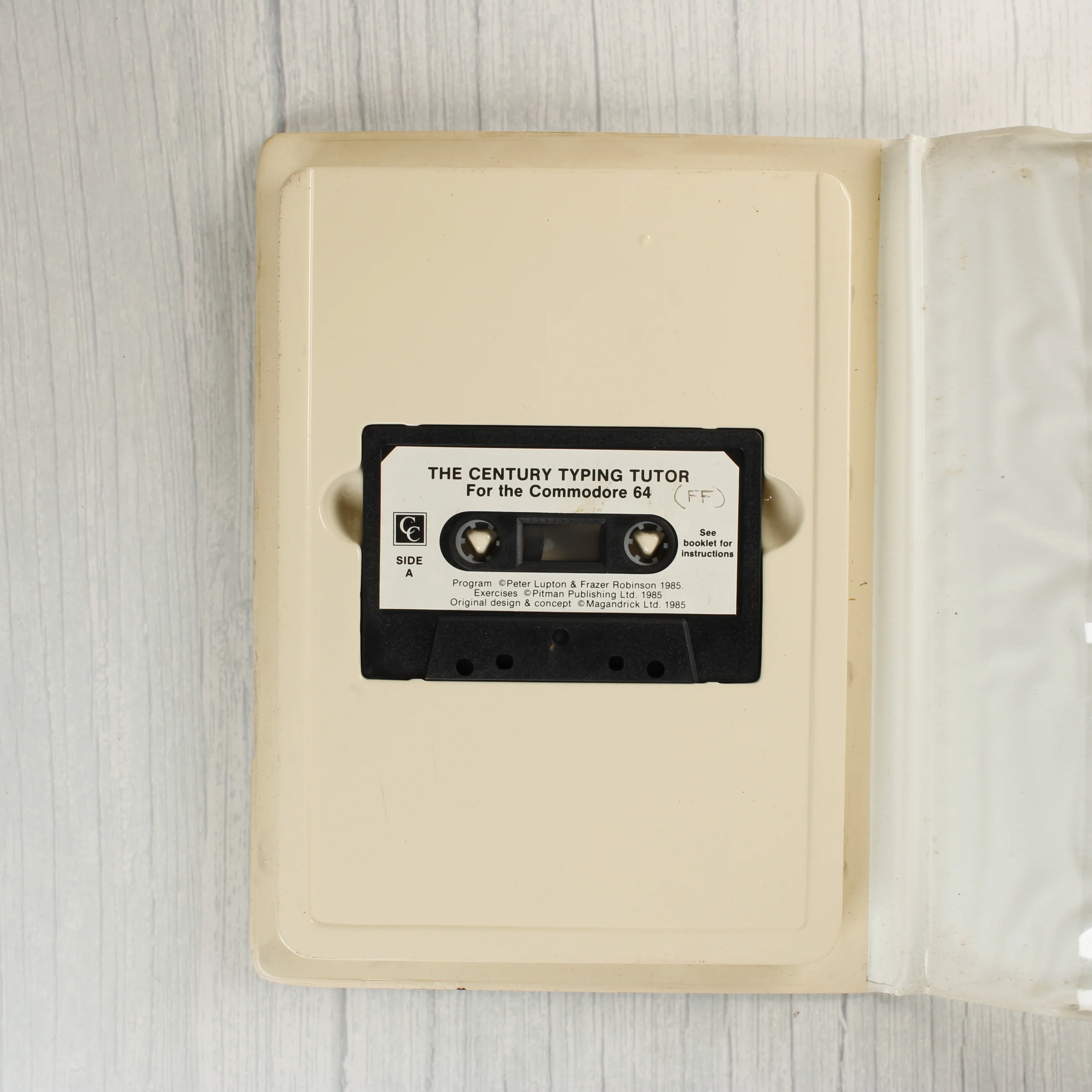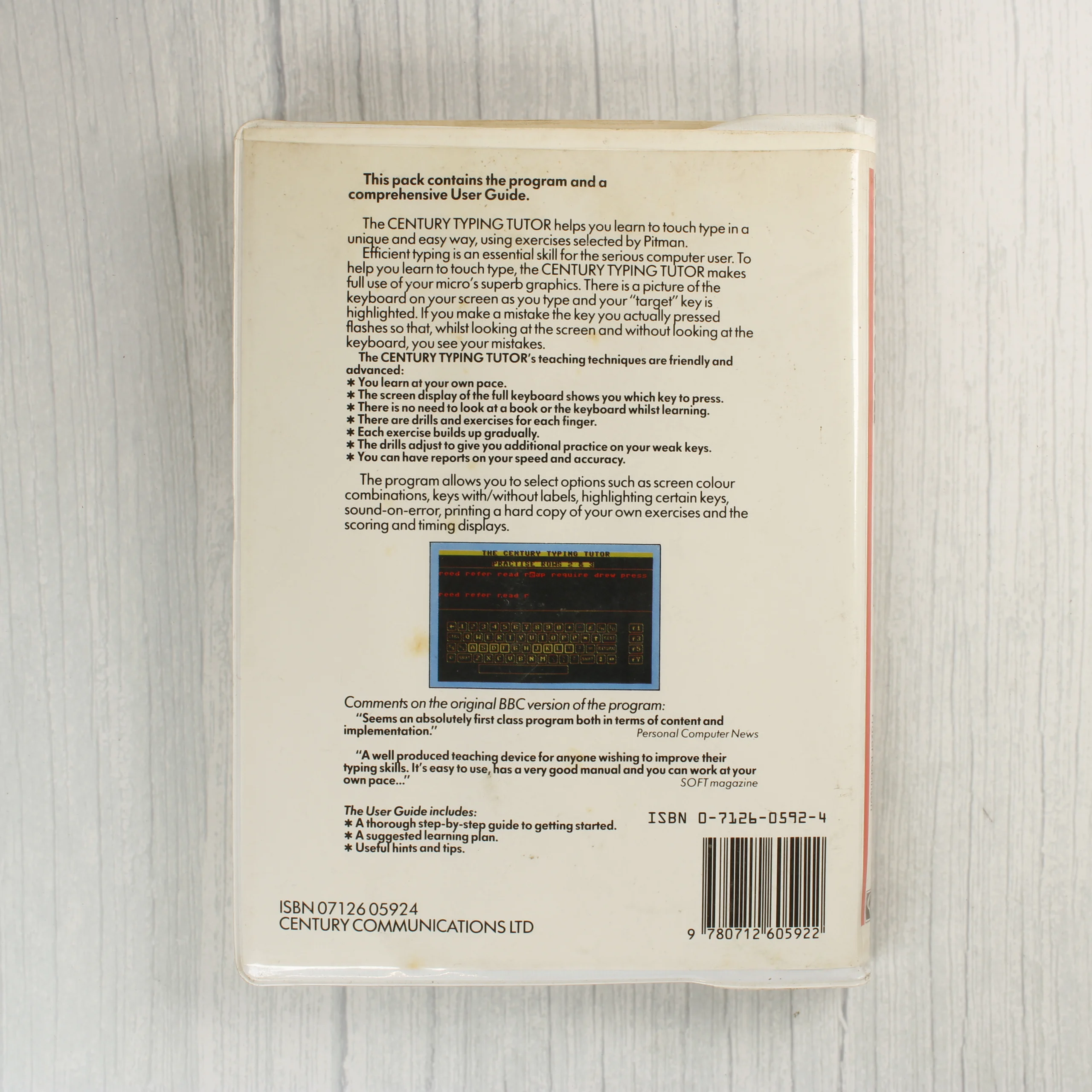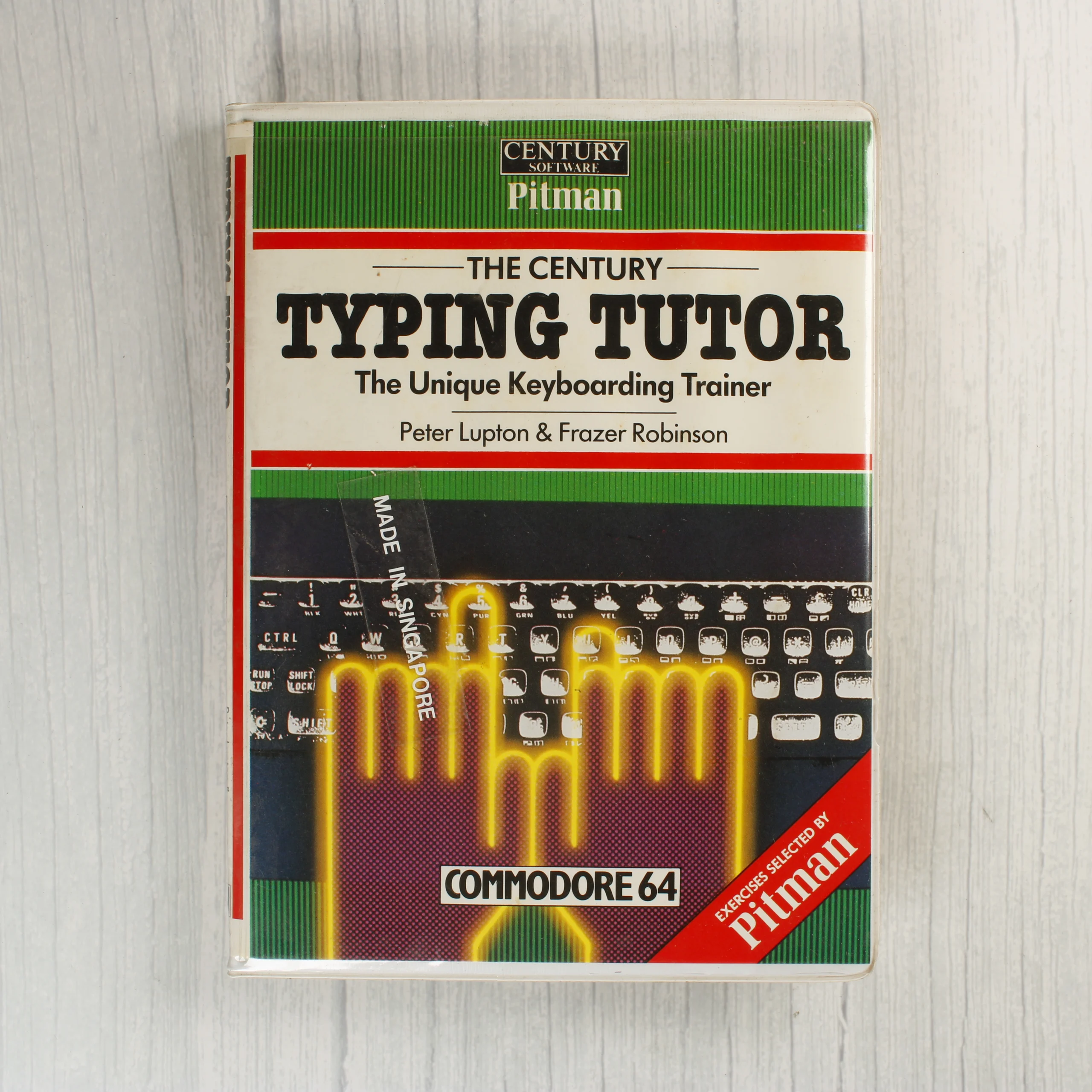 A Century Software által kiadott The Century Typing Tutor egy gépírást oktató szoftver Commodore 64 számítógéphez. A csomag egy nagyméretű, fehér műanyag tokban található, amelynek elején színes, illusztrált borító látható. A borítón egy billentyűzet felett lebegő, világító kéz körvonala jelenik meg, zöld és piros sávokkal díszítve. A tok belsejében egy fekete színű, feliratozott magnókazetta helyezkedik el egy egyedi kialakítású tartóban. A hátoldalon részletes leírás olvasható a program funkcióiról, valamint egy képernyőkép is látható a szoftver felületéről. A termék Peter Lupton és Frazer Robinson munkája, a Pitman által válogatott gyakorlatokkal.