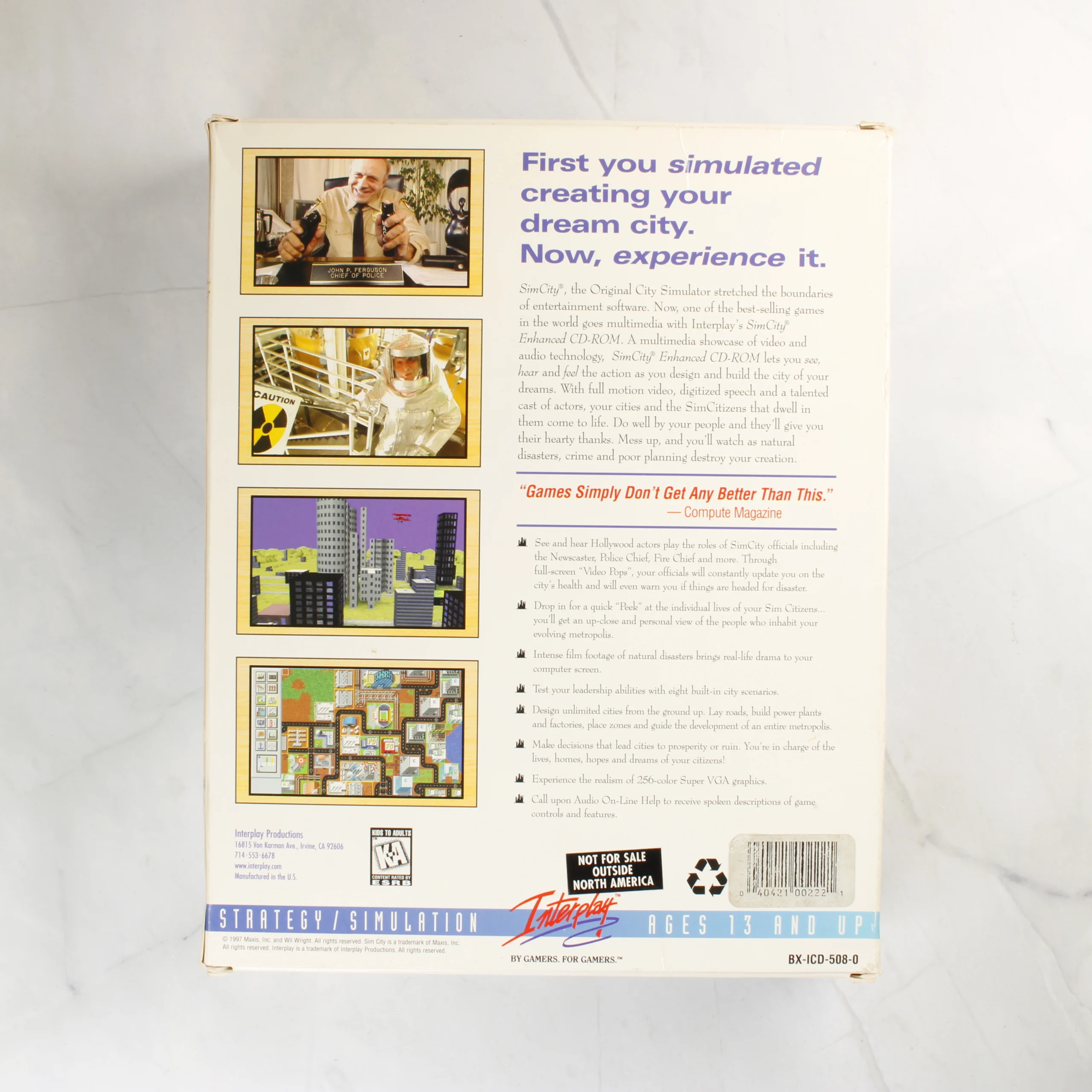SimCity Enhanced CD-ROM kiadás PC-re, eredeti nagy dobozos csomagolásban, Interplay és Maxis kiadásban.