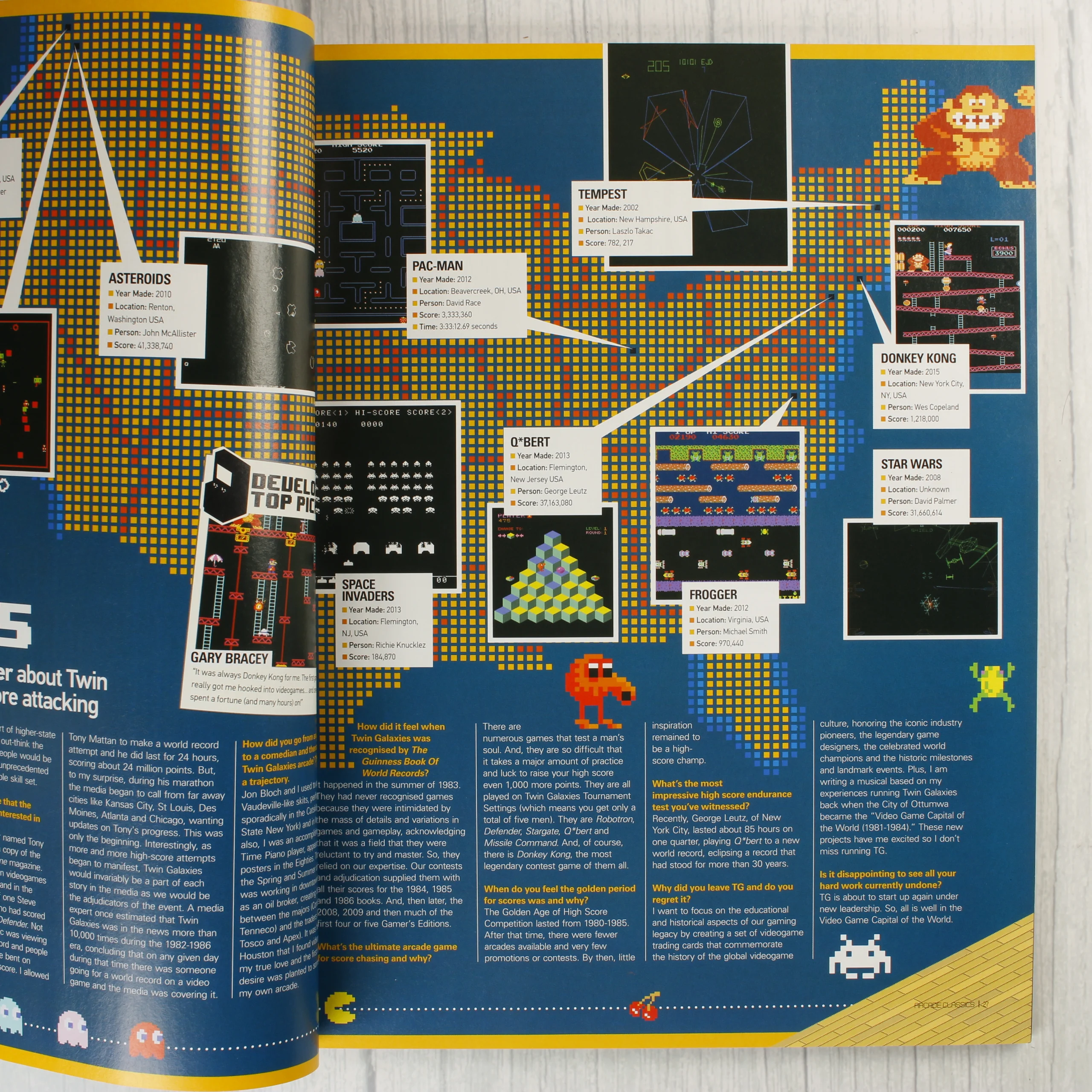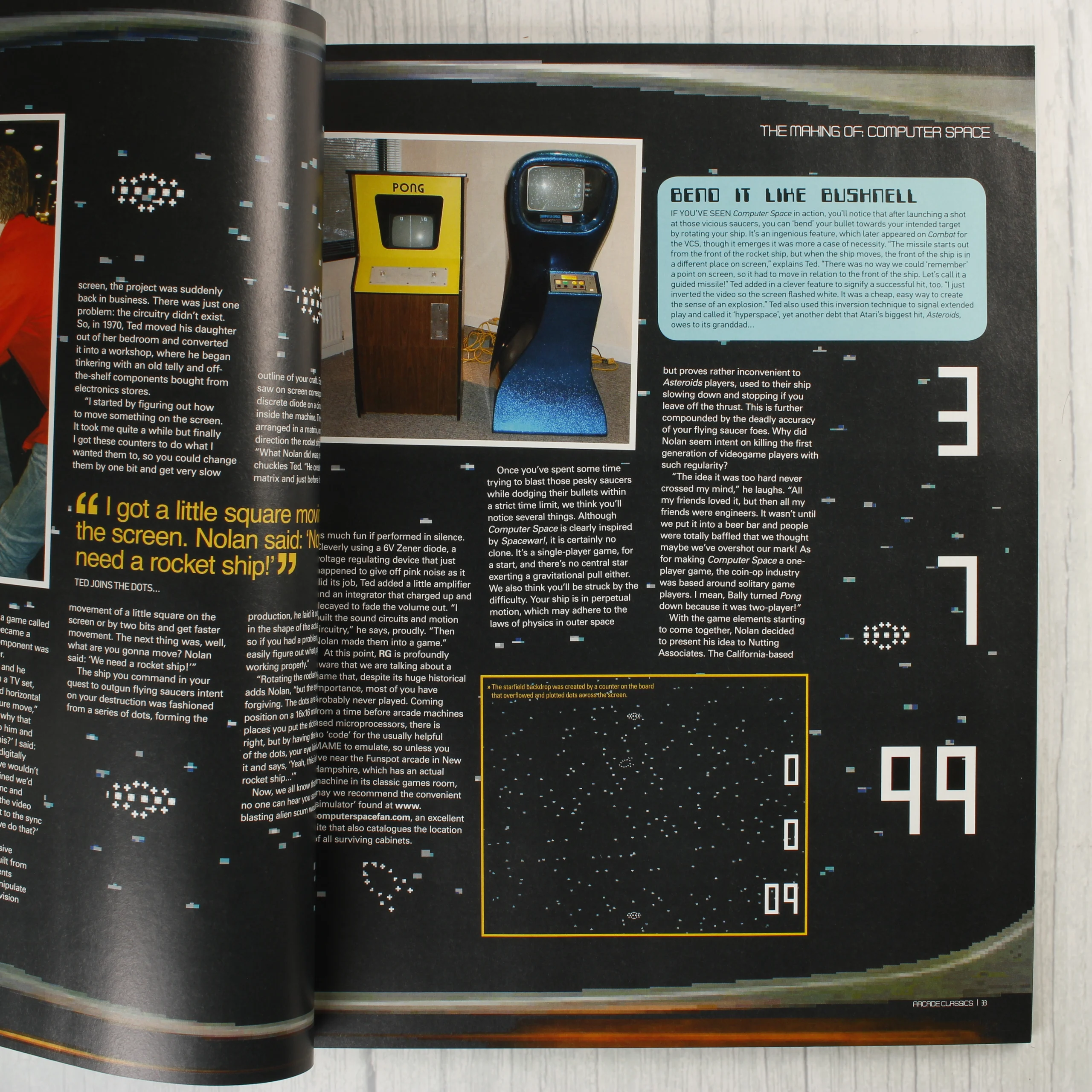 Retro Gamer Book of Arcade Classics magazin a klasszikus játéktermi videójátékokról, fejlesztői interjúkkal és színes illusztrációkkal.