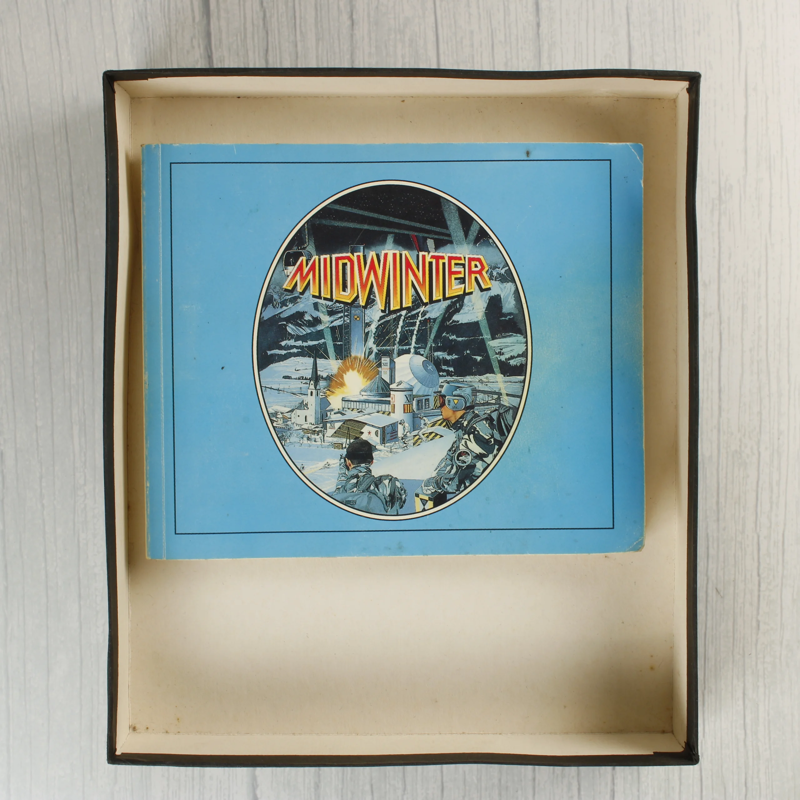 A Midwinter egy 1989-es kiadású stratégiai videójáték Atari ST platformra, a Rainbird gondozásában. A csomag egy nagyméretű, színes kartondobozt tartalmaz, amelynek elején egy havas, futurisztikus tájkép látható katonákkal és épületekkel. A doboz hátoldalán angol nyelvű leírás, játékmenet-képernyőképek és a főbb jellemzők listája olvasható. A készlet része egy kék színű Master Disk és egy fehér színű Graphic Disk floppy lemez, mindkettő 3,5 colos formátumú. A csomag tartalmaz továbbá egy színes borítójú kézikönyvet, egy fekete-fehér betétlapot a betöltési útmutatóval, valamint egy térképmellékletet. A papíralapú összetevőkön és a doboz belső felületén az idő múlására utaló enyhe sárgulás és apró foltok láthatóak, de a grafika és a szövegek jól olvashatóak maradnak.
