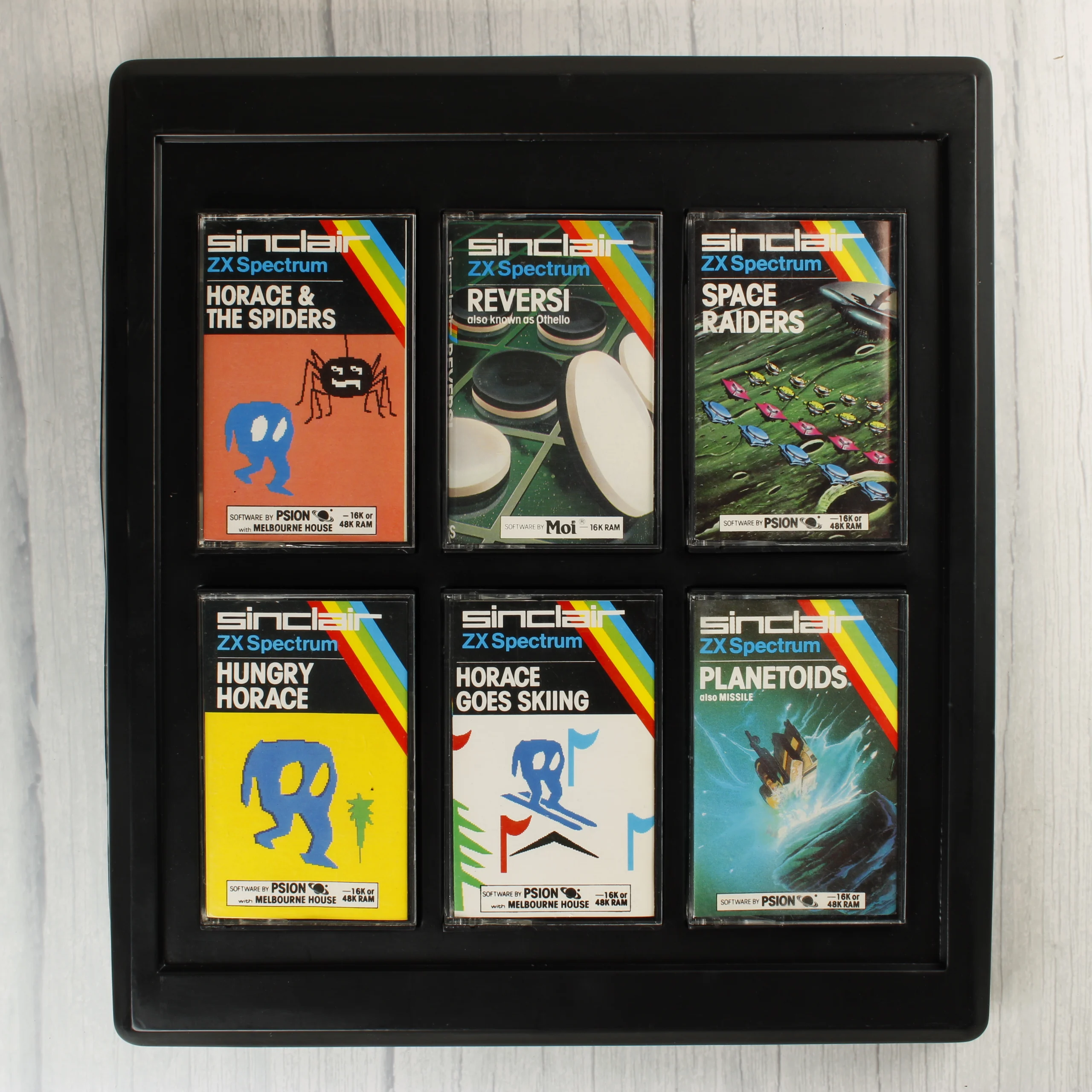 Egy Sinclair ZX Spectrum számítógéphez készült videójáték-gyűjtemény, amely hat darab különálló magnókazettát tartalmaz egy közös fekete műanyag tálcában és egy karton védőborítóban. A csomagban található játékok: Horace & The Spiders, Reversi, Space Raiders, Hungry Horace, Horace Goes Skiing és Planetoids. Minden kazetta saját műanyag tokkal és színes borítóval rendelkezik, amelyeken a Sinclair logó és a jellegzetes szivárványos sáv látható. A külső fekete kartoncsomagoláson láthatóak a használat és a tárolás nyomai, több helyen gyűrődés, kopás és kisebb szakadások tapasztalhatóak a széleken. A belső műanyag tálca és a kazetták tokjai jó állapotúnak tűnnek, a borítók színei élénkek. A szoftvereket a Psion, a Melbourne House és a Moi fejlesztette.
