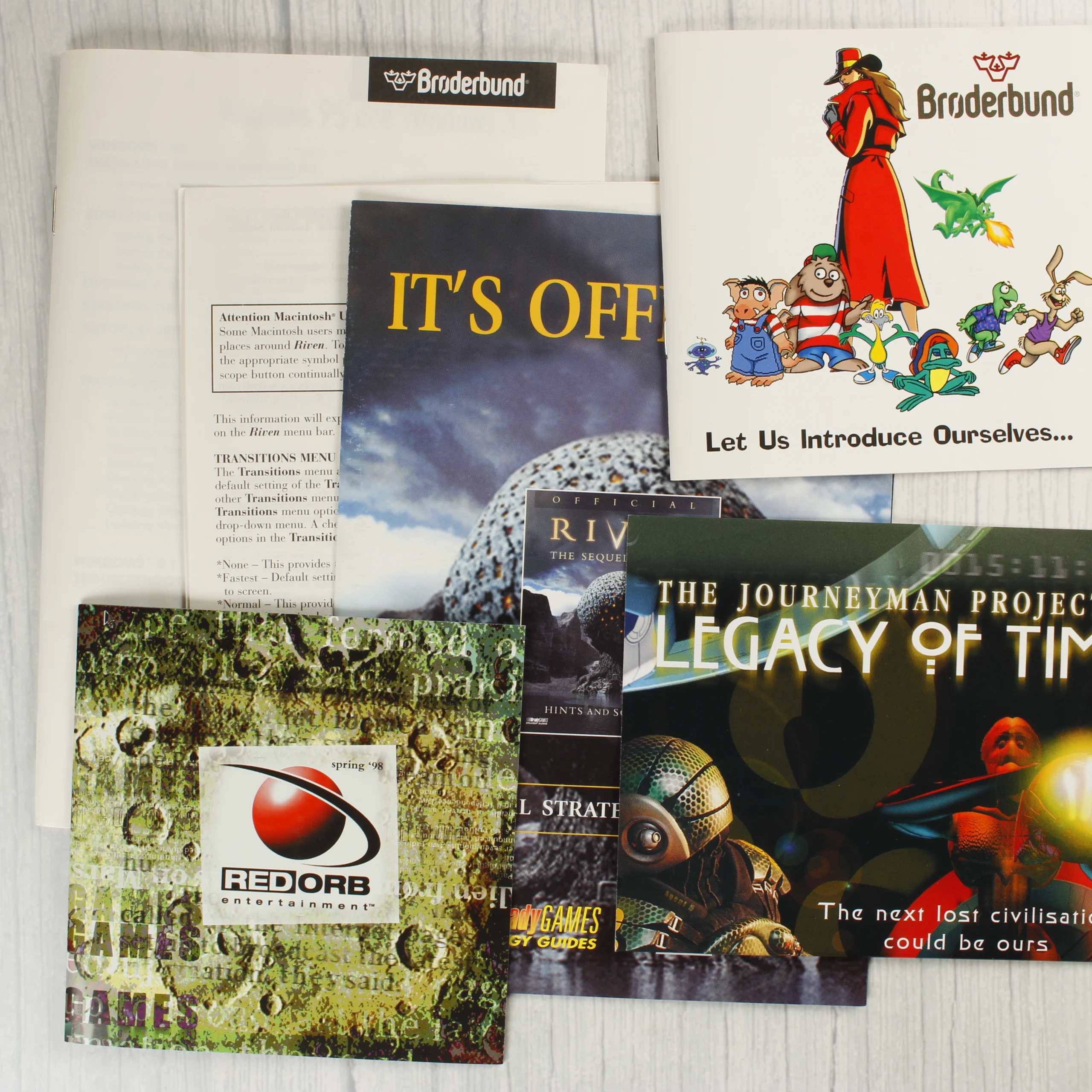 Riven: The Sequel to Myst videójáték PC és Mac platformra. 5 lemezes kiadás eredeti dobozban, kézikönyvvel és mellékletekkel.
