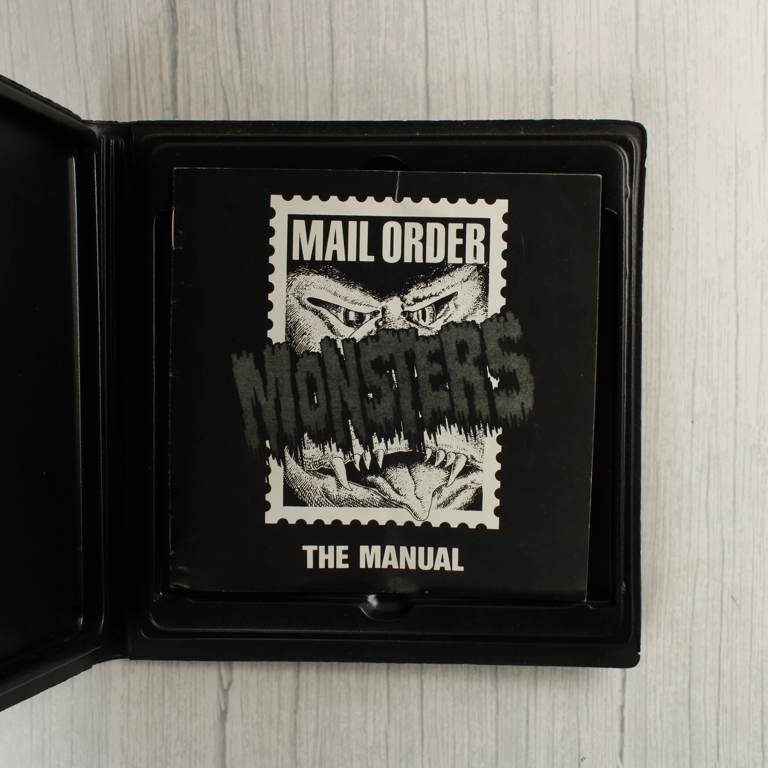 A Mail Order Monsters című videójáték Commodore 64 platformra készült kiadása. A csomag egy fekete műanyag tokot tartalmaz, amelyben egy darab mágnesszalagos kazetta és egy nyomtatott használati útmutató található. A borítón egy páncélozott szörnyalak látható, mellette postai bélyegre emlékeztető grafika és az Ariolasoft logója. A hátoldalon képernyőmentések és angol nyelvű leírás olvasható a játékmenetről. A kazetta sárga címkével rendelkezik, amelyen a játék címe és a készítők nevei szerepelnek. A belső műanyag tálca fekete színű, és külön helyet biztosít a kazettának és a kézikönyvnek.