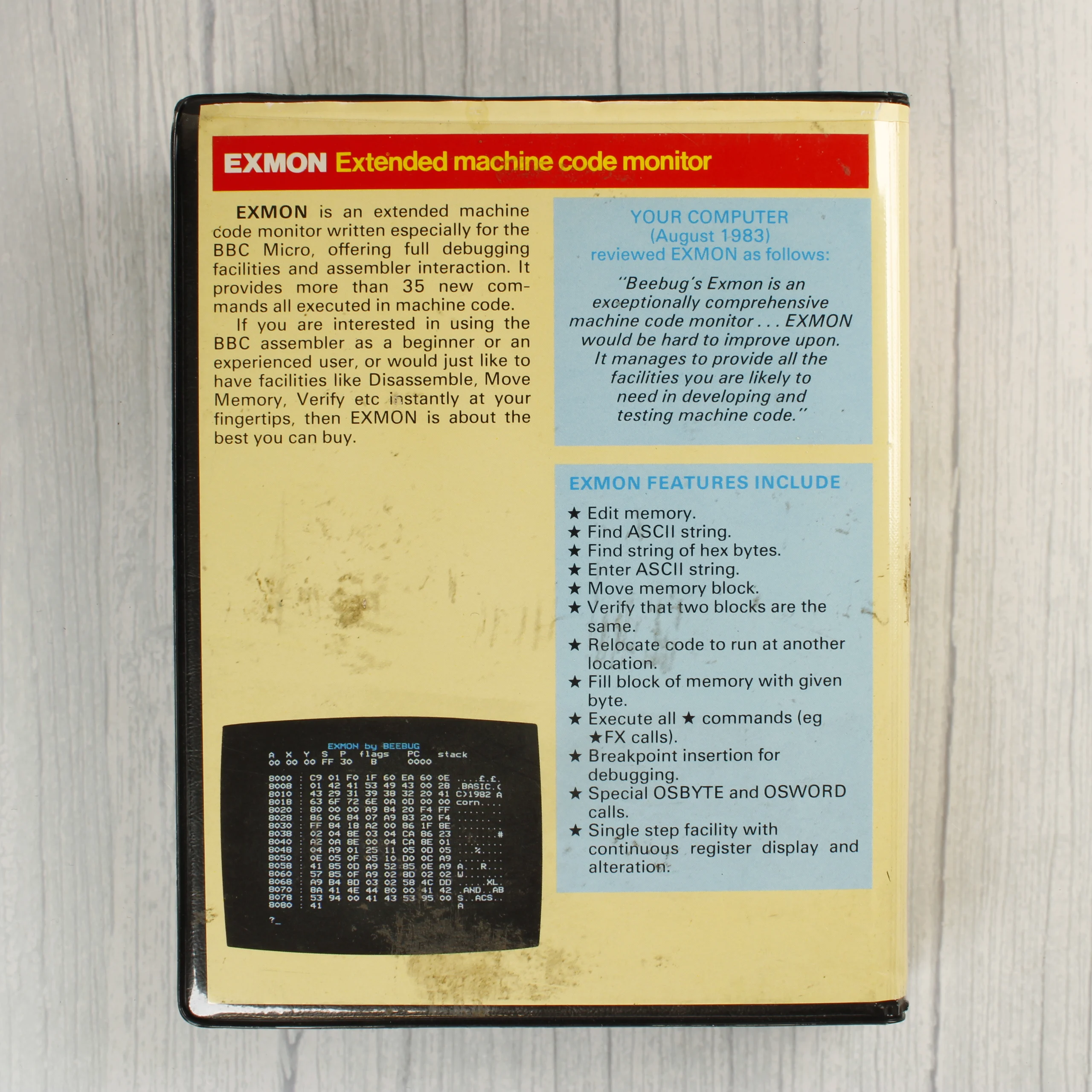 EXMON, Beebugsoft, BBC Micro, retro számítástechnika, magnókazetta, szoftver, monitor program