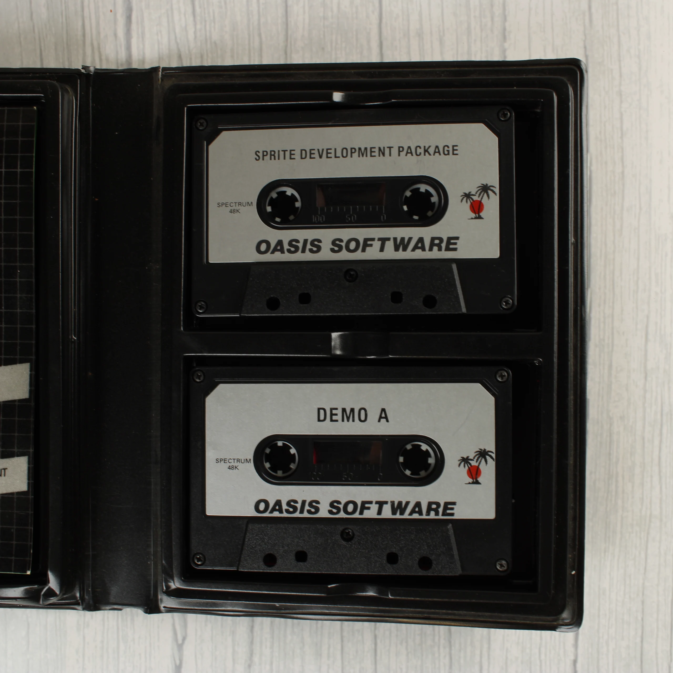 White Lightning, Oasis Software, ZX Spectrum, 48K, retro szoftver, magnókazetta, grafikai fejlesztő, sprite
